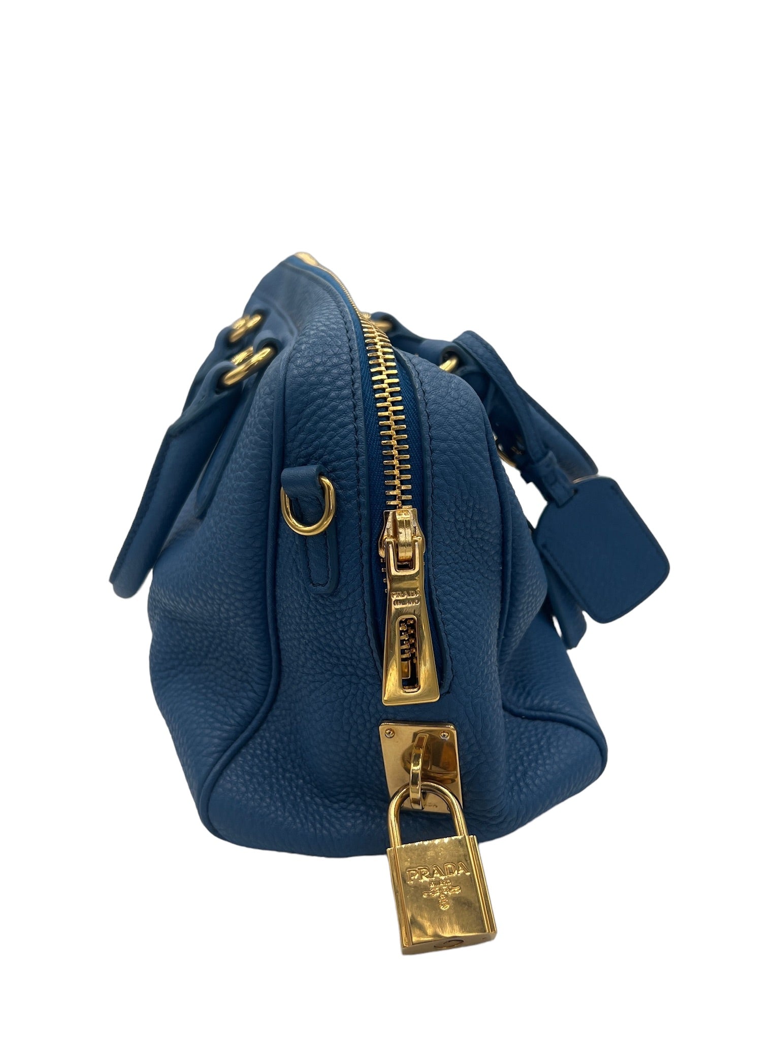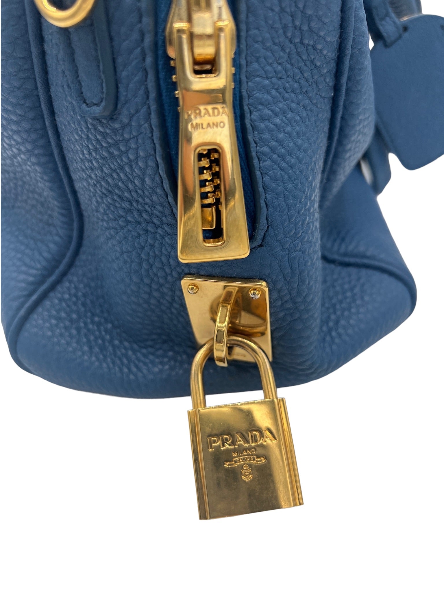 Indulge in luxurious style with the PRADA Blue Handbag. Crafted with a leather tag and two zipper pockets, this handbag offers both functionality and sophistication. The perfect accessory to elevate any outfit, this handbag is a must-have for any fashion-forward individual. Upgrade your wardrobe with PRADA today!
