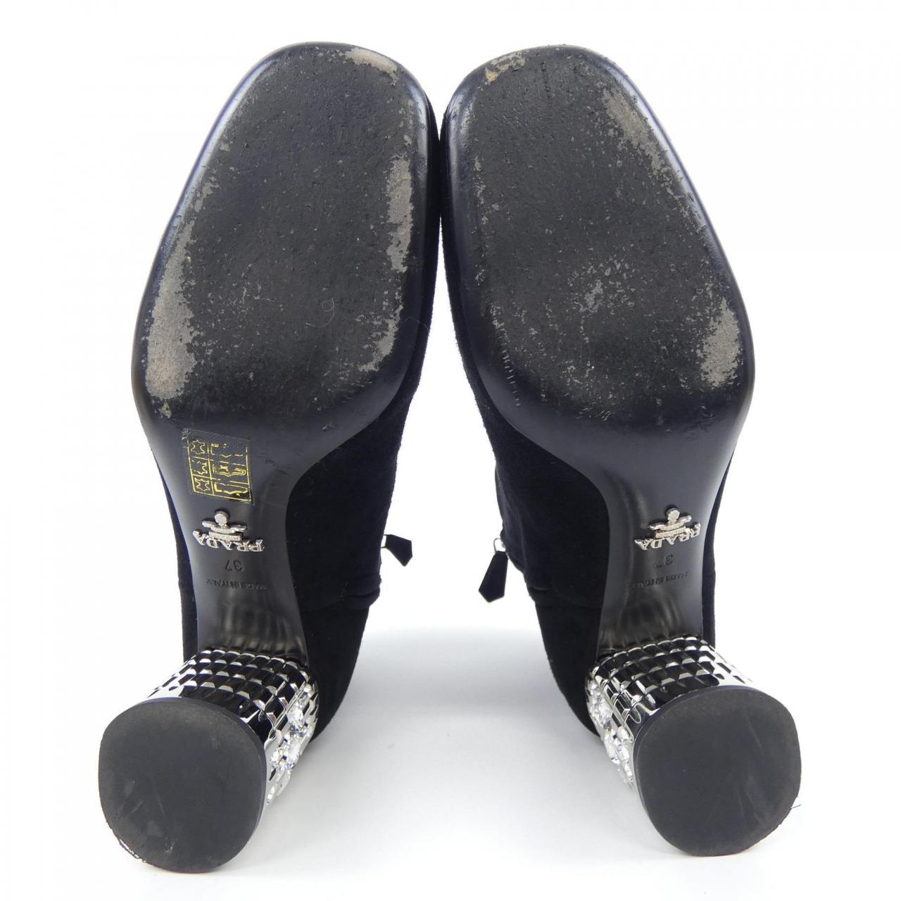 Step into effortless sophistication with these Prada Boots. Crafted with meticulous attention to detail, these boots offer a sleek silhouette that seamlessly blends practicality and high-fashion. The modest heel provides a comfortable lift for all-day wear, while the refined design elevates any ensemble. Perfect for navigating city streets or adding a touch of understated elegance to your everyday style, these boots are a versatile investment piece for the modern wardrobe. Experience the luxury and timeless appeal of Prada with every step.