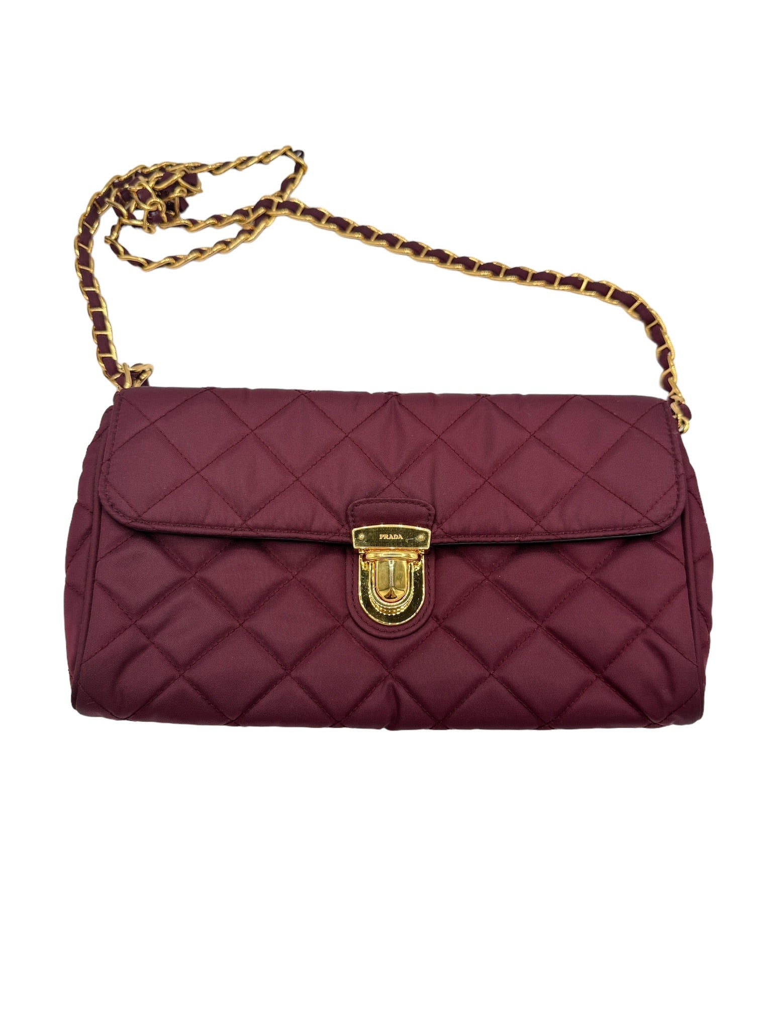 PRADA - Bordeaux Nylon Shoulder Bag Golden Toned Hardware