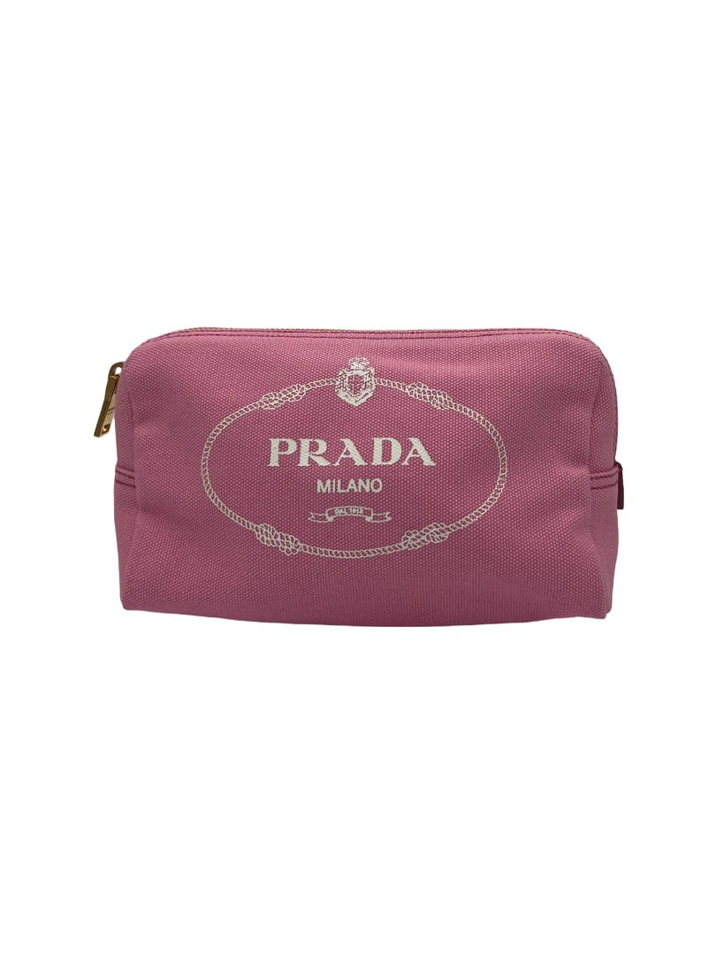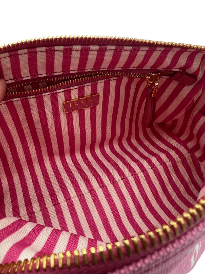 PRADA - Canapa Pouch Geranio Bianco Pink White Canvas