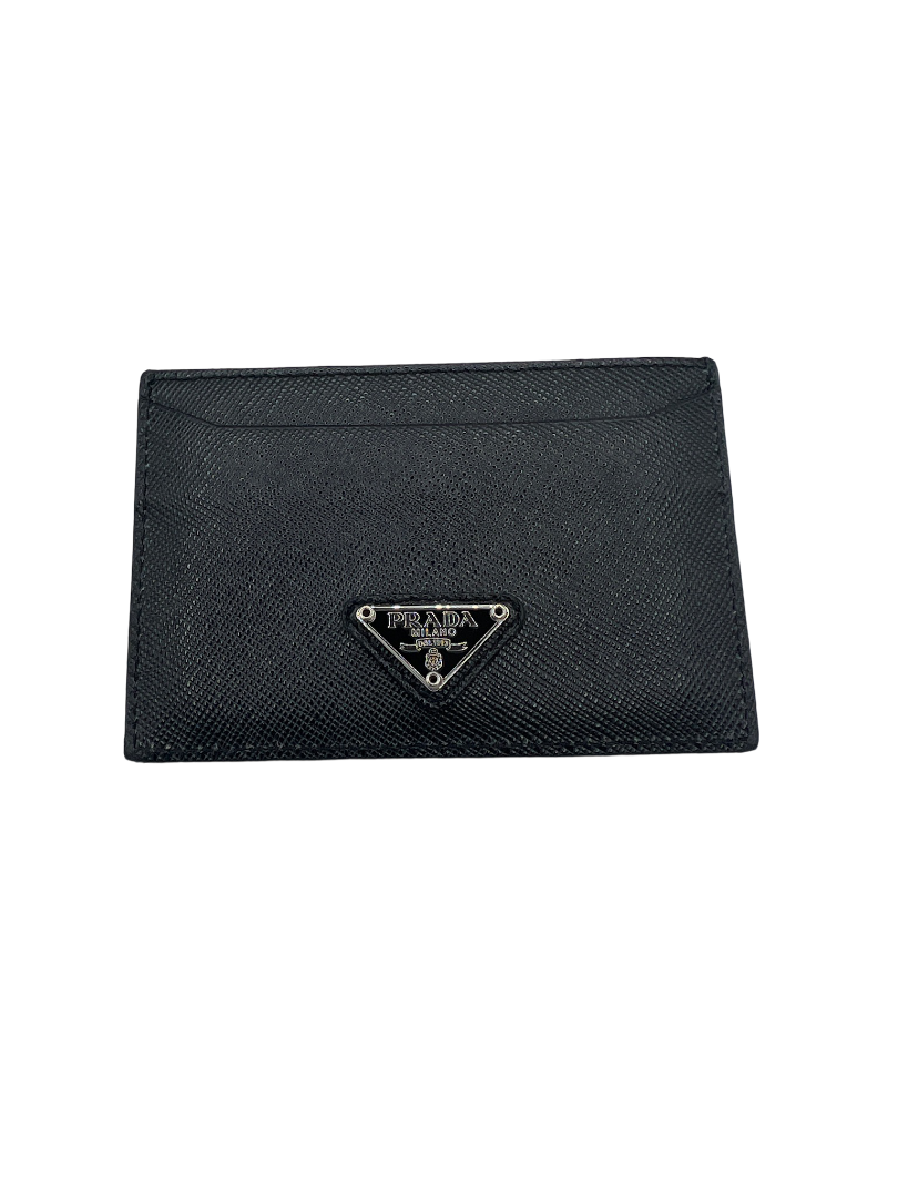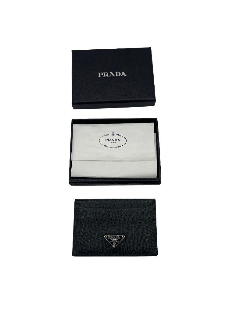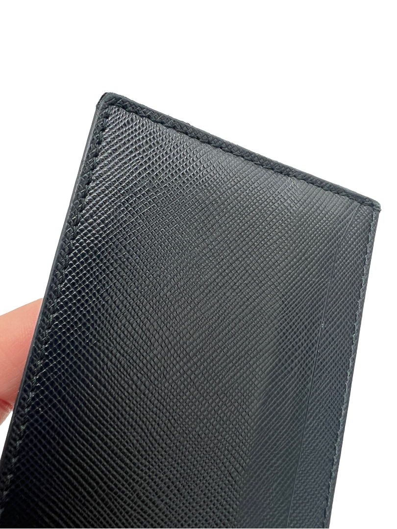 This PRADA Card Case in black leather is a stylish and practical accessory for keeping your cards organized.
