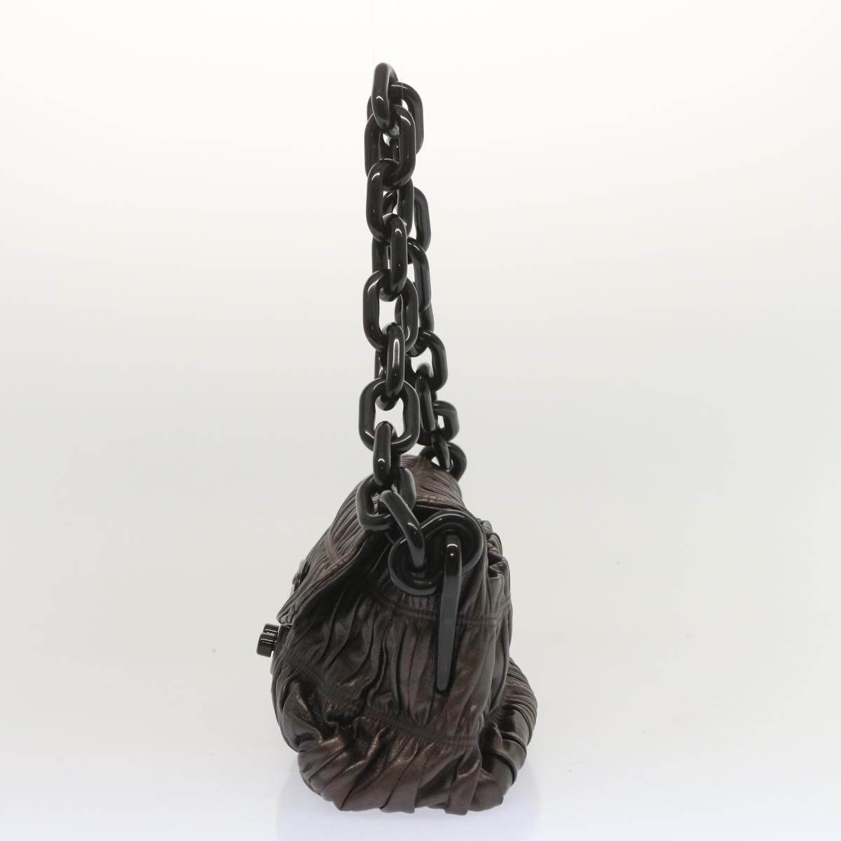 PRADA Chain Shoulder Bag Leather Gunmetal hk1132