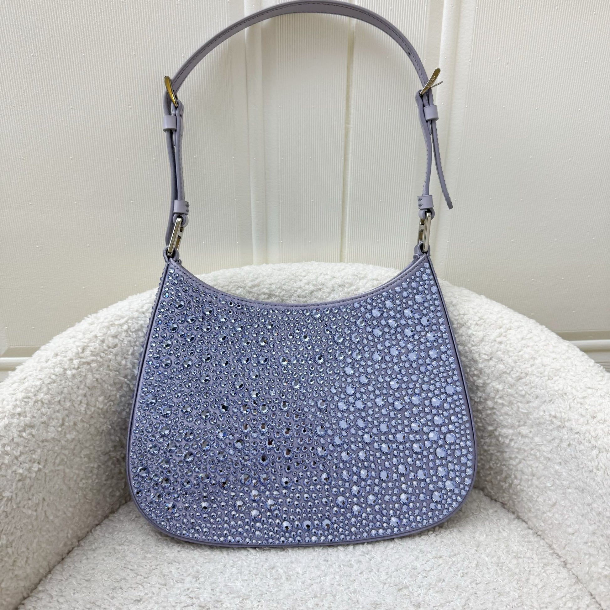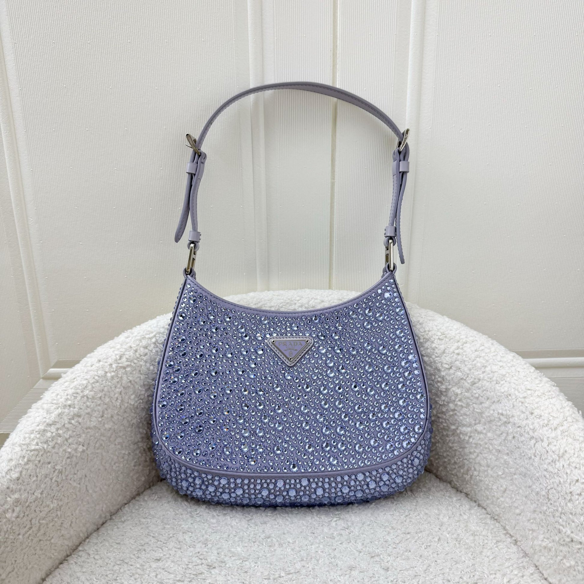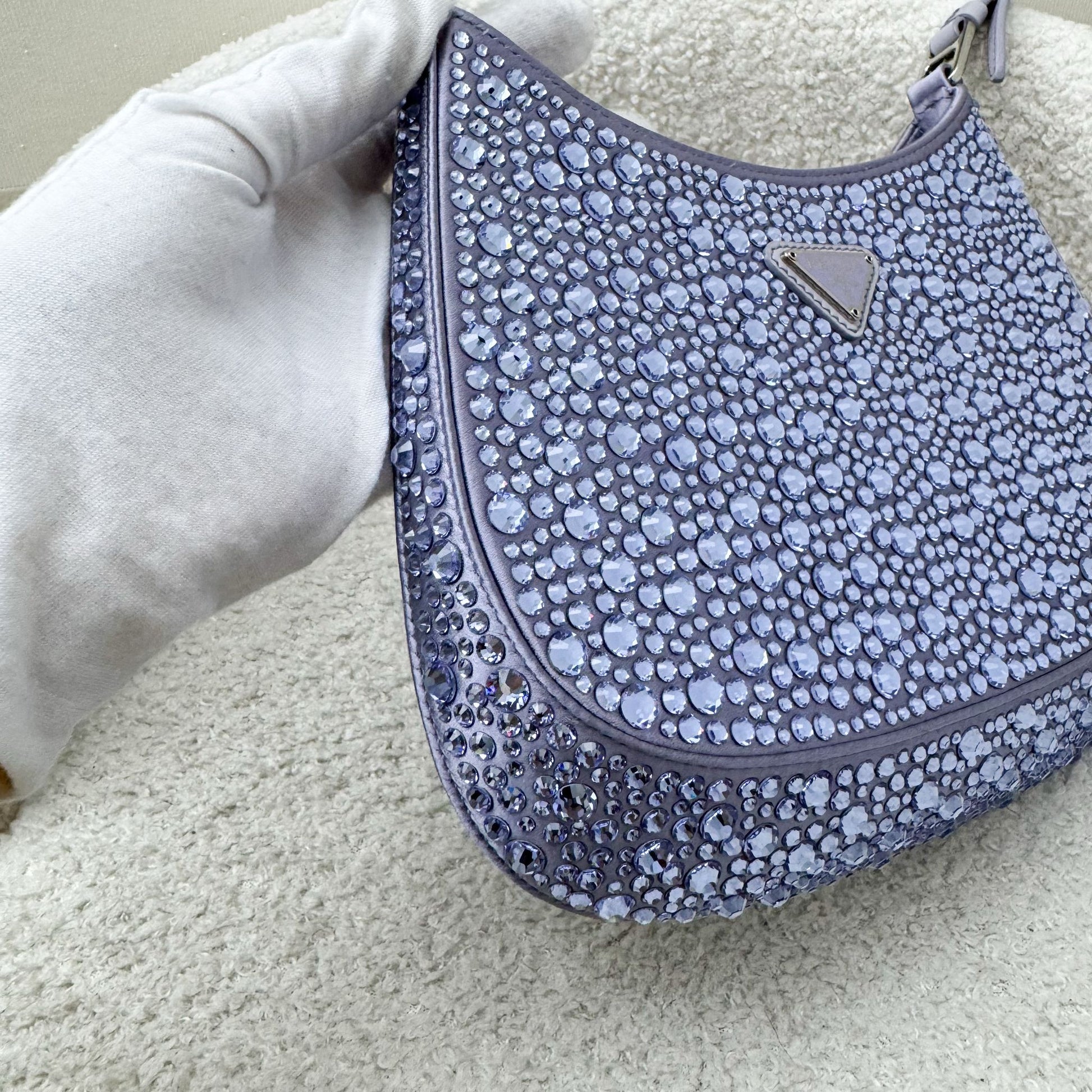 Prada Cleo Bag in Light Purple Satin with Crystals