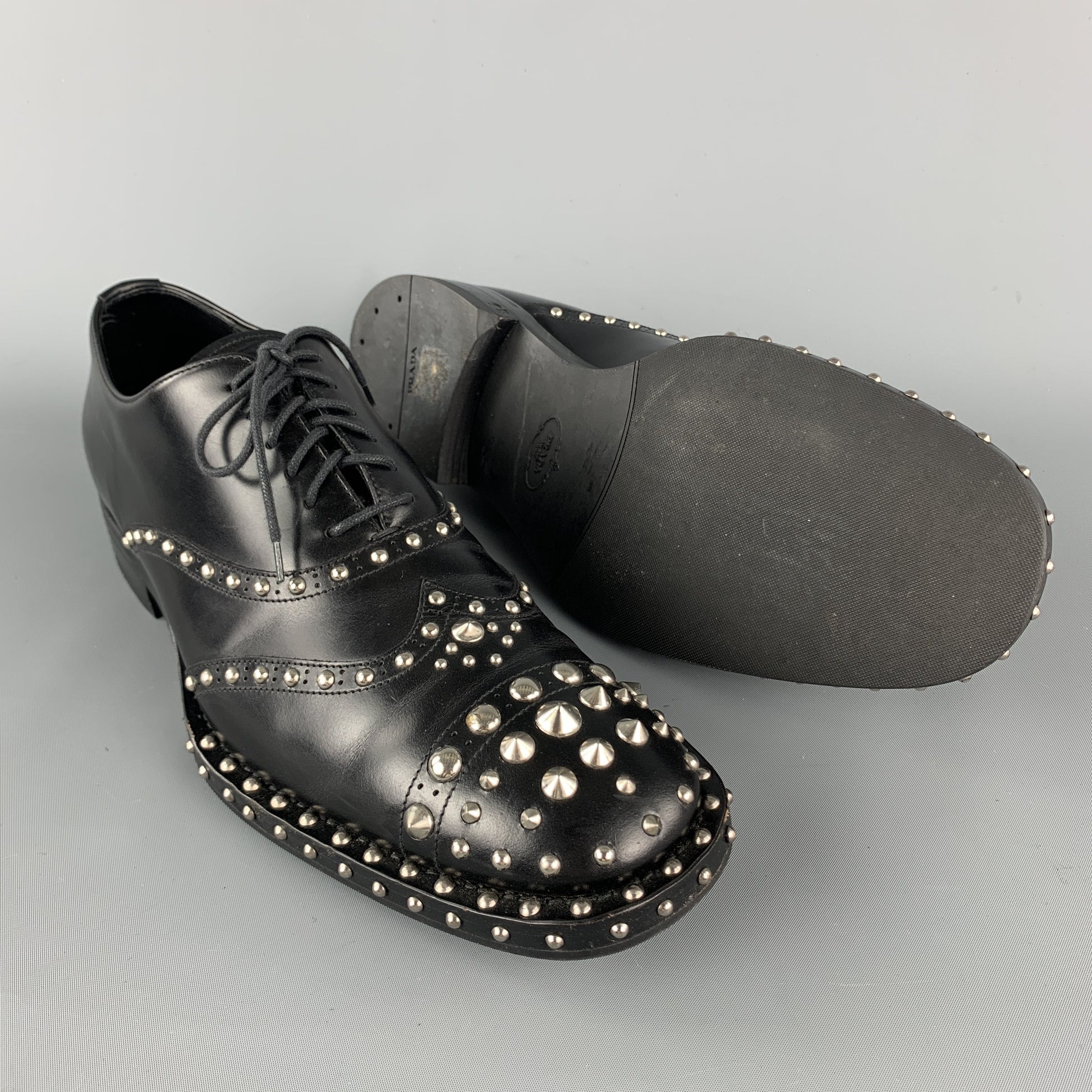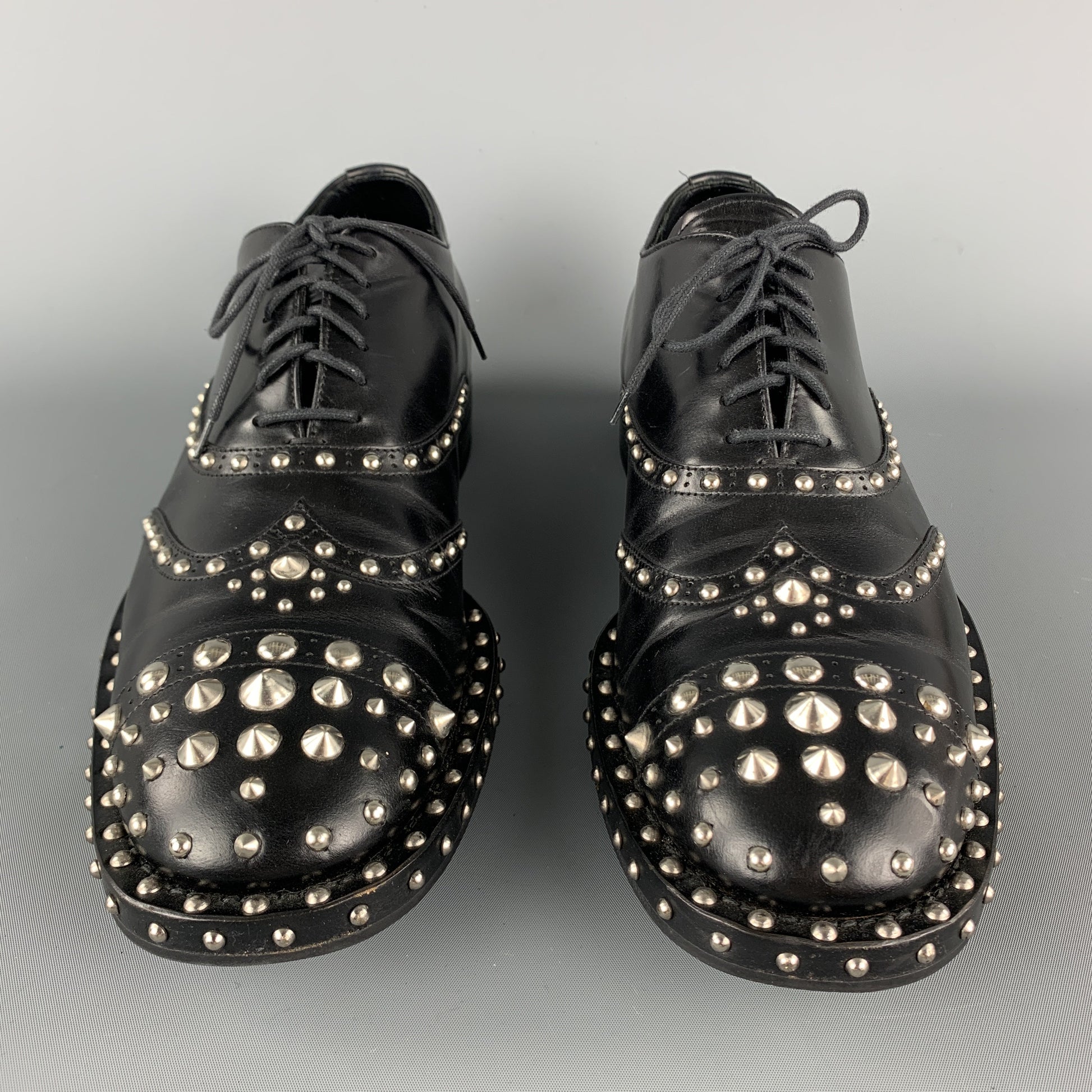 PRADA F/W 09 Size10.5 Black Studded Leather Cap Toe Lace Up Shoes