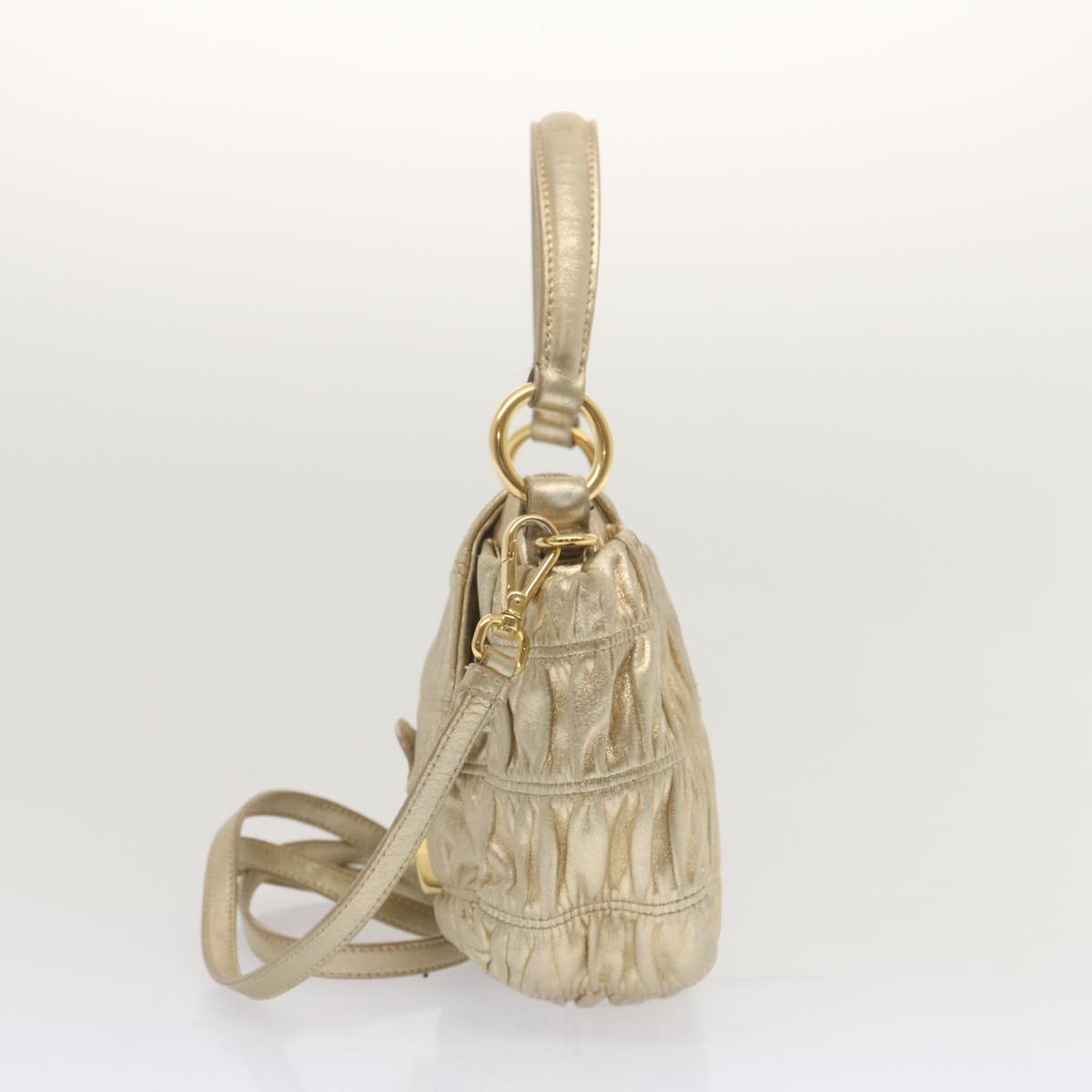 PRADA Gathered Shoulder Bag Leather 2way Gold Tone ki3791