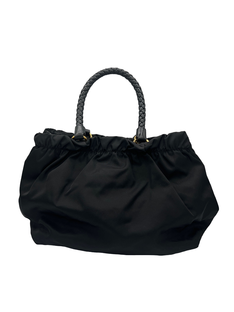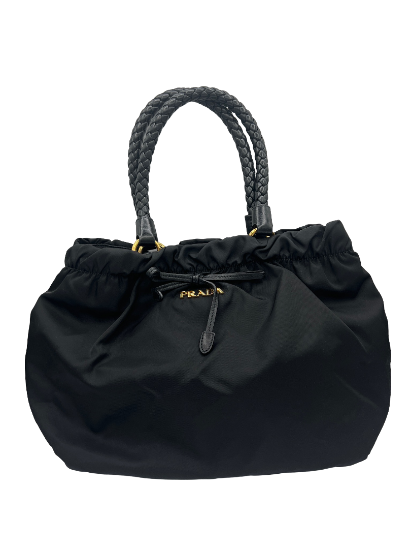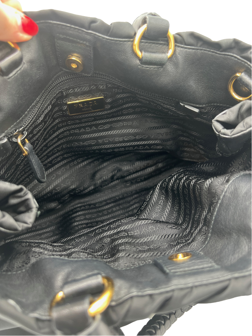 This PRADA Gathered Tote Bag in Black Nylon has been ! A very good condition means that the item has been well taken care off but may show minor signs of wear such as slight scratches or scuffs on the exterior leather or hardware.