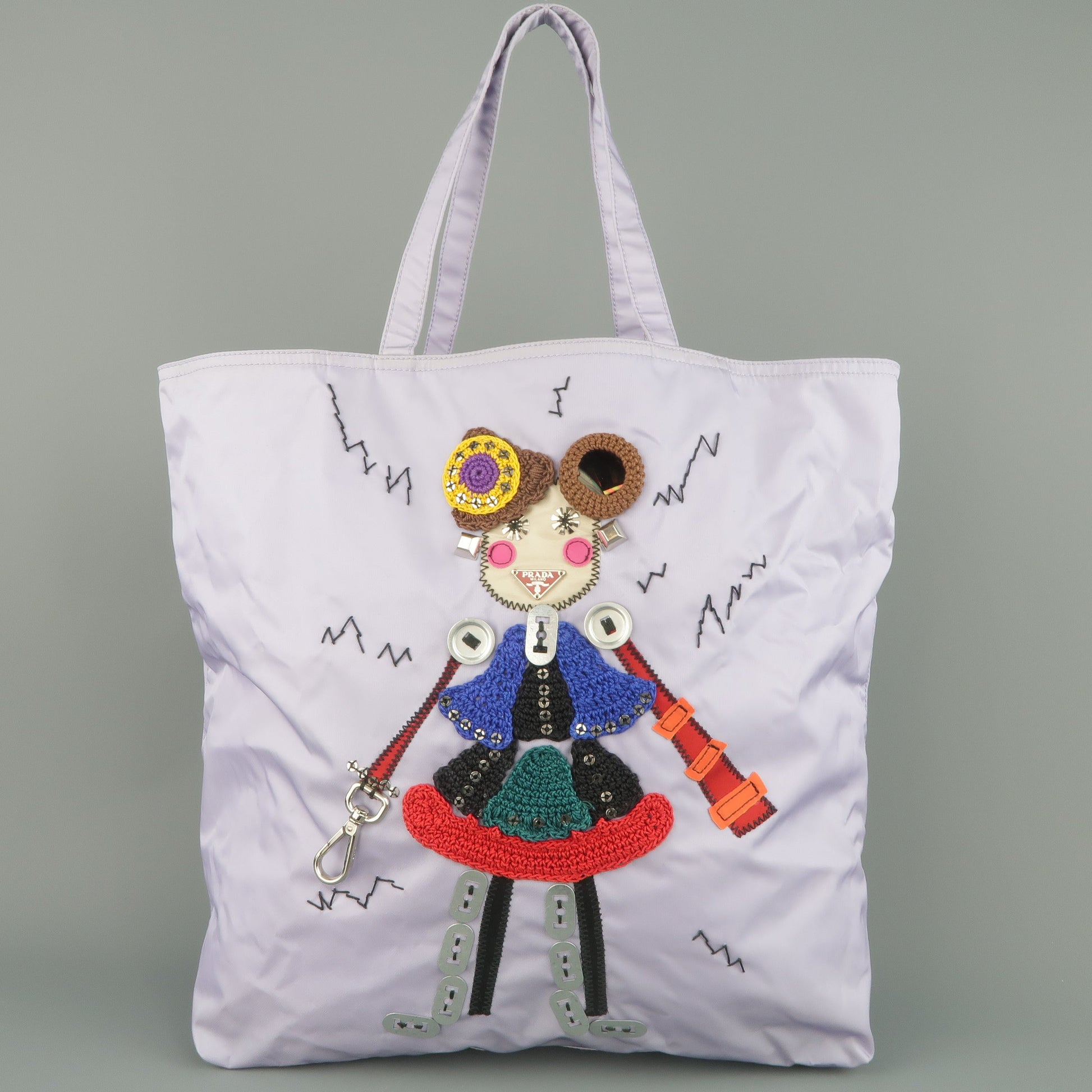PRADA Lavender Nylon Robot 6 Lady Embellished Tote Handbag