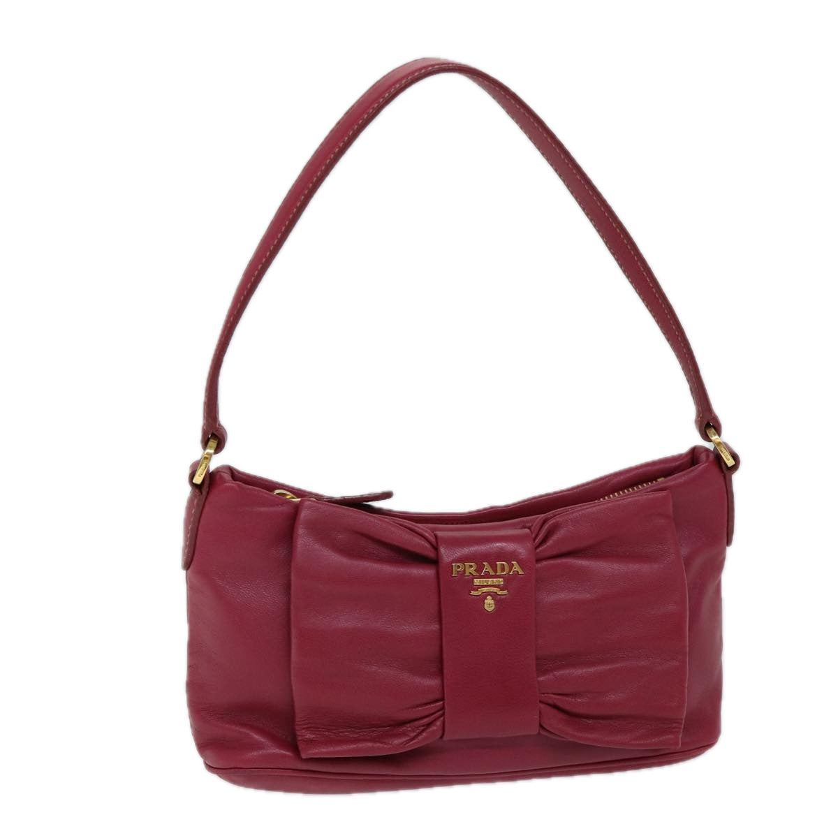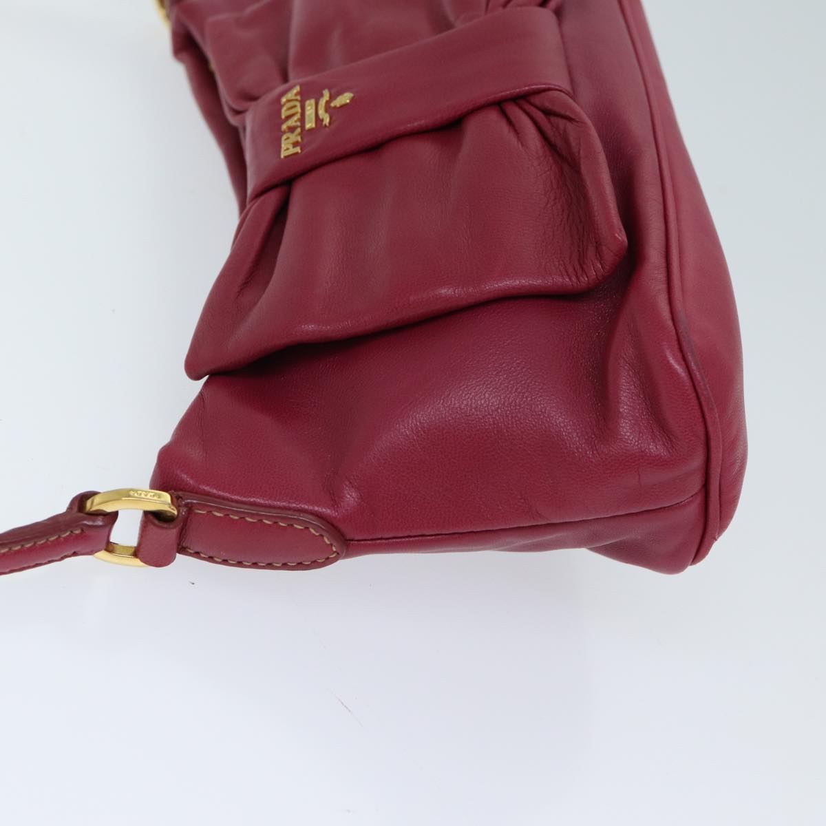 PRADA ribbon Accessory Pouch Leather Pink 72318