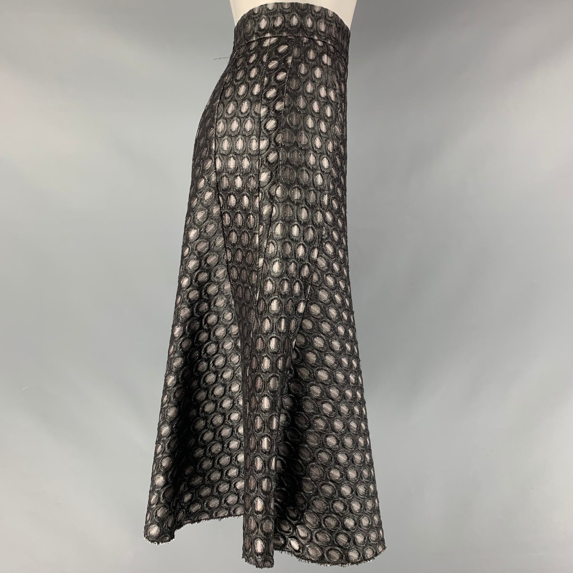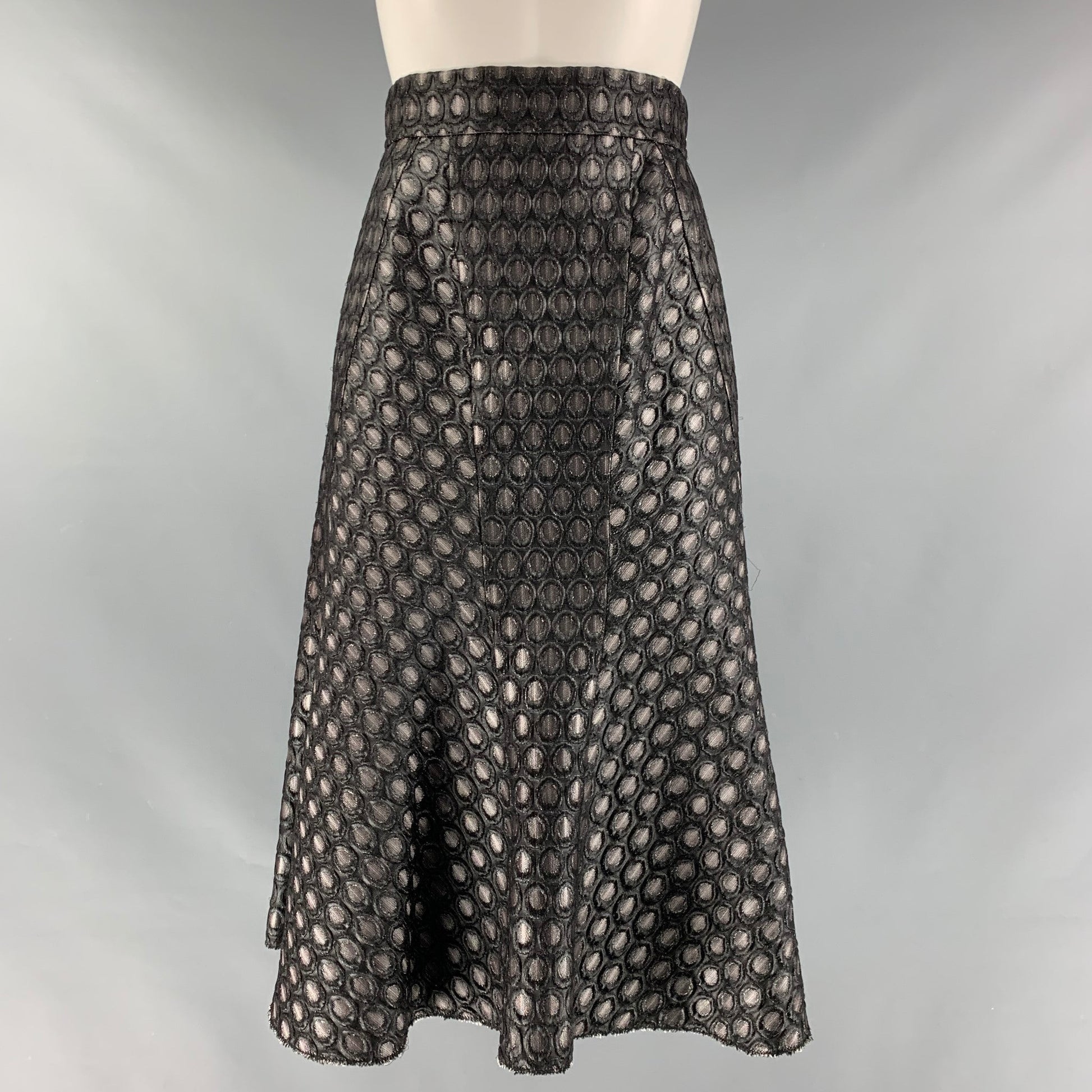 PRADA Size 2 Black Silver Acrylic Blend Dots A-Line Skirt