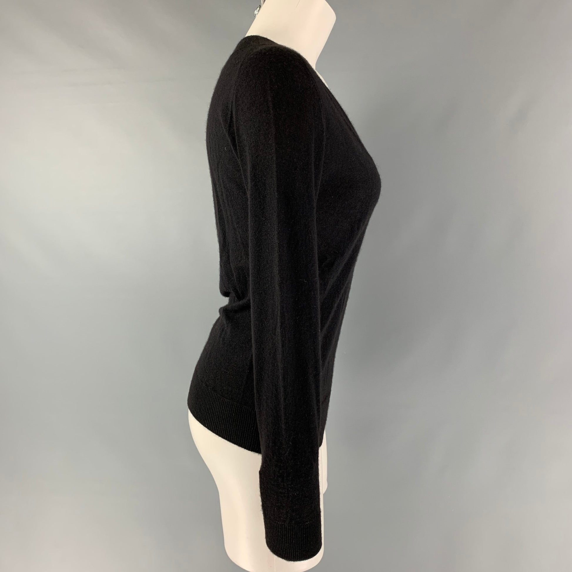 PRADA long sleeve pullover comes in a black jersey knit fabric featuring a V-neck. Made in Italy.
