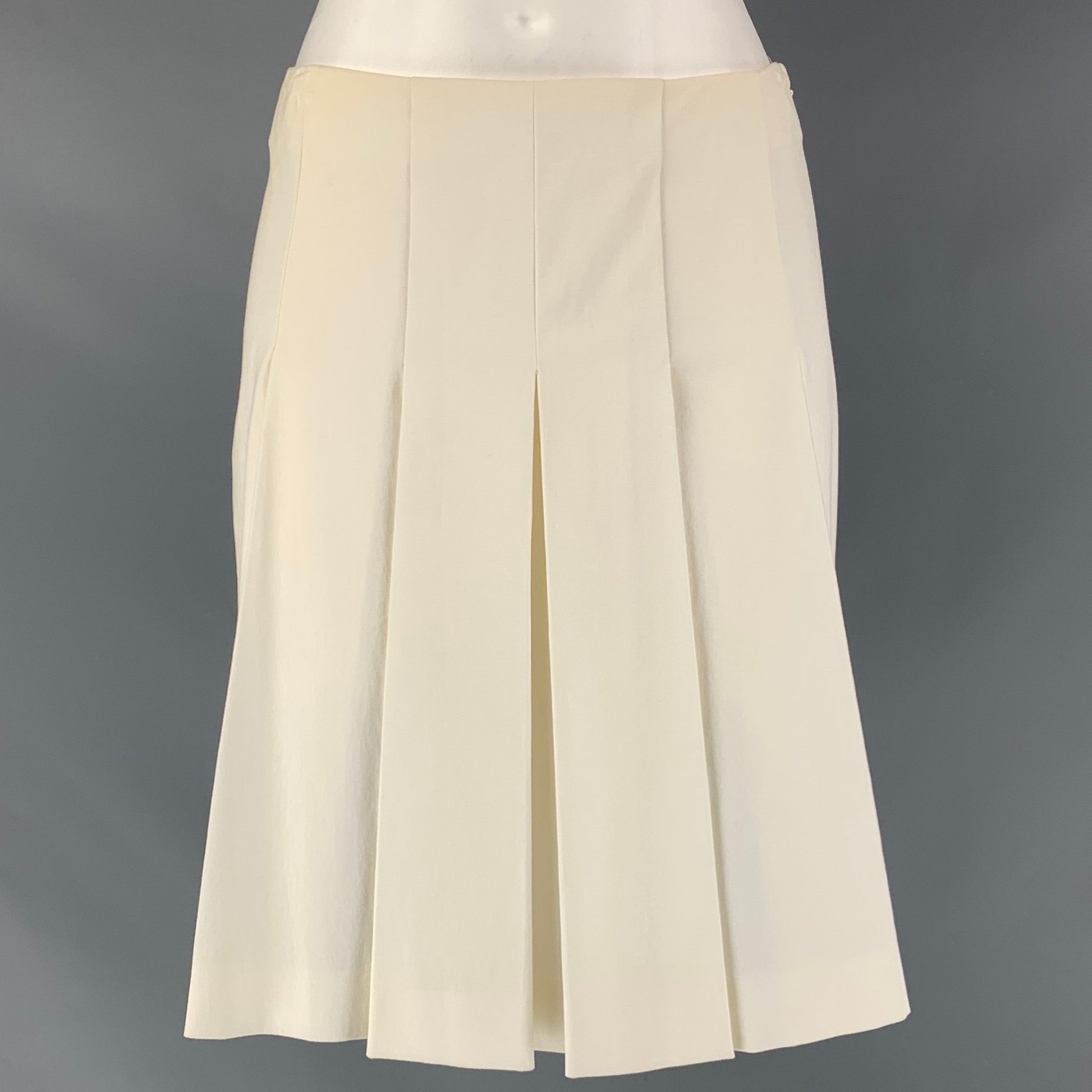 PRADA Size 2 Cream Cotton Blend Pleated Skirt