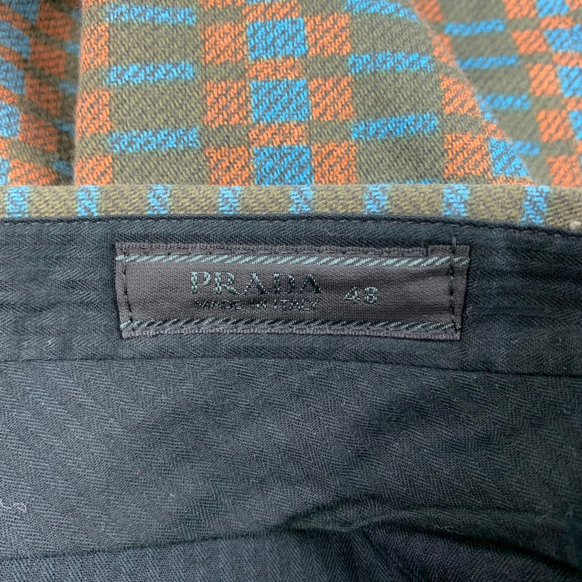 PRADA Size 32 Green Blue Squares Cotton Casual Pants