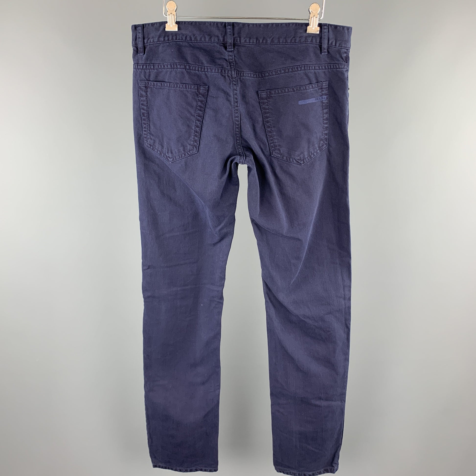 PRADA Size 33 Navy Solid Cotton Jean Cut Casual Pants