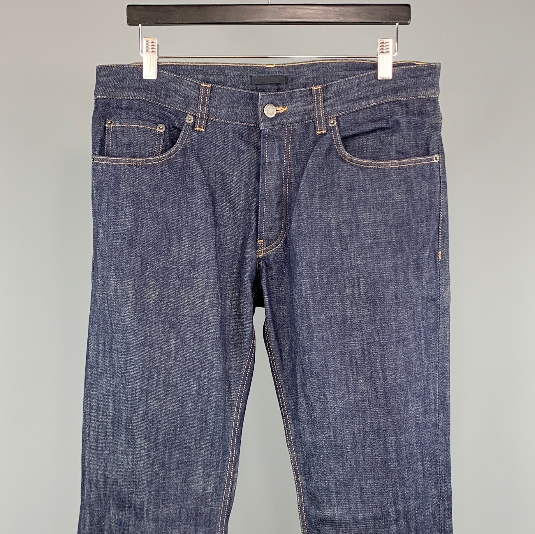 PRADA Size 33 x 34 Indigo Solid Cotton Button Fly Jeans