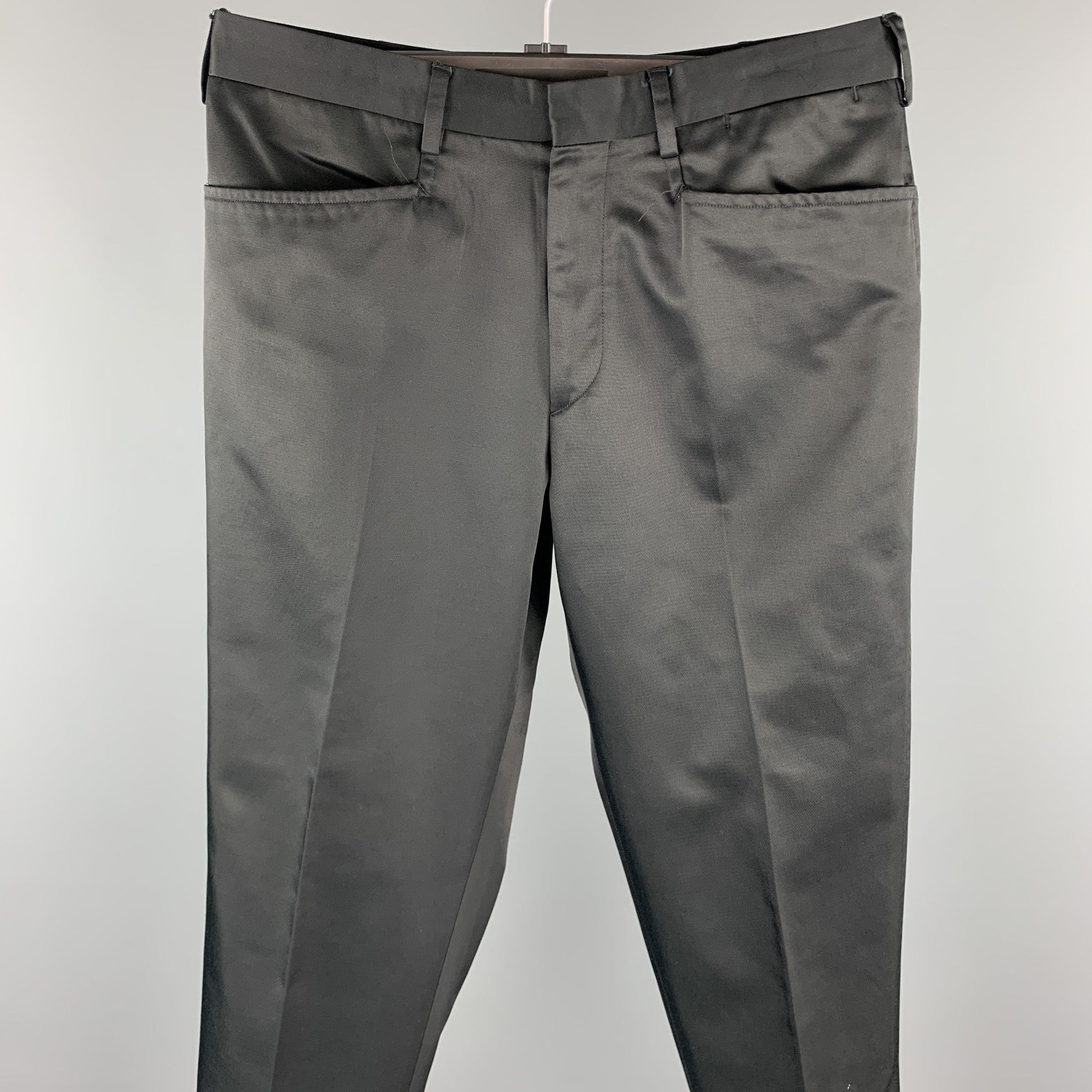 PRADA Size 32 Black Cotton / Nylon Zip Fly Dress Pants