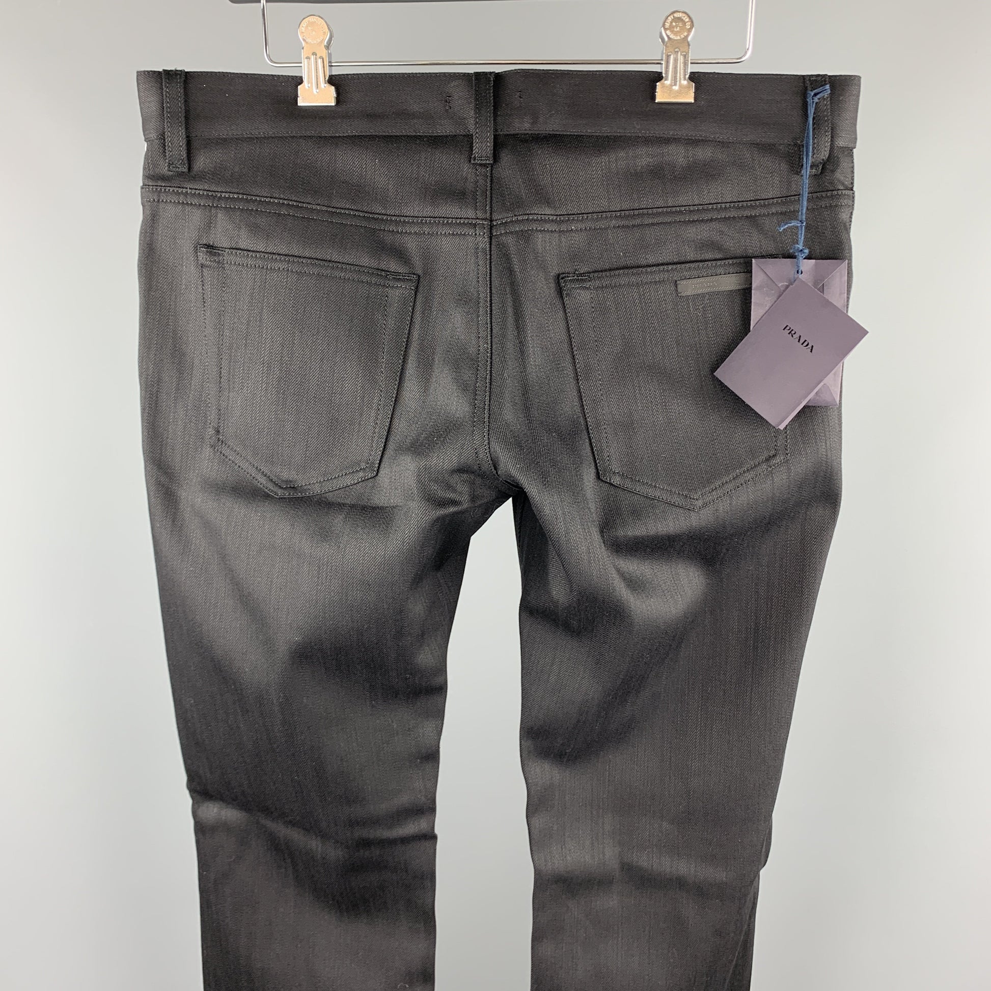 PRADA Size 34 Black Solid Cotton / Polyurethane Button Fly Jeans