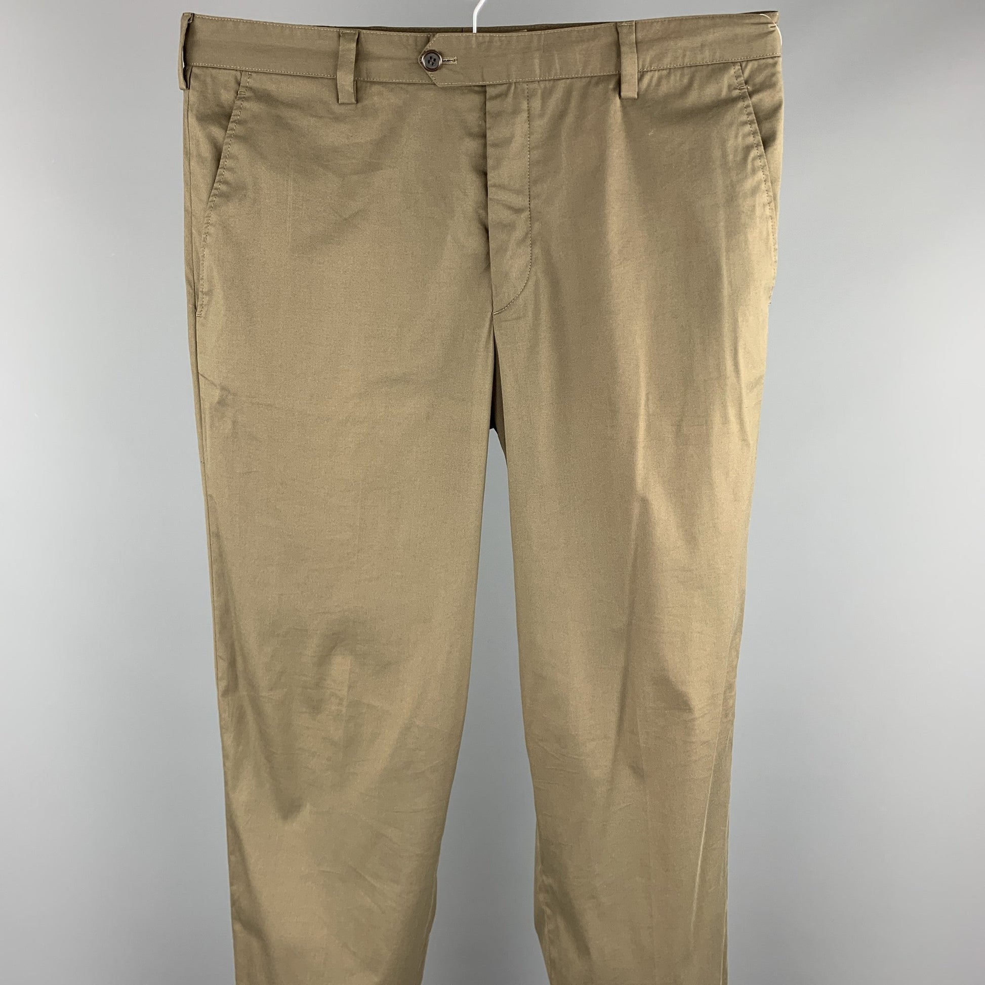 PRADA Size 34 Olive Cotton Blend Button Fly Casual Pants