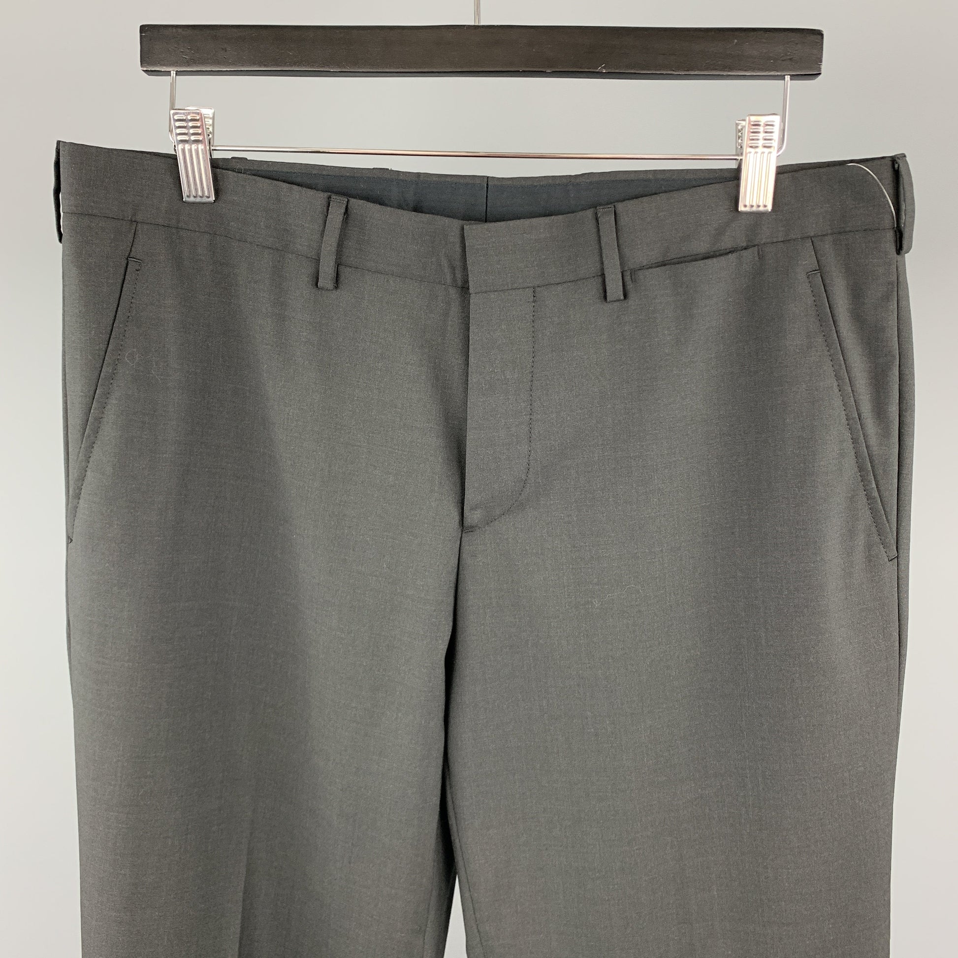 PRADA Size 34 x 34 Black Virgin Wool Zip Fly Dress Pants