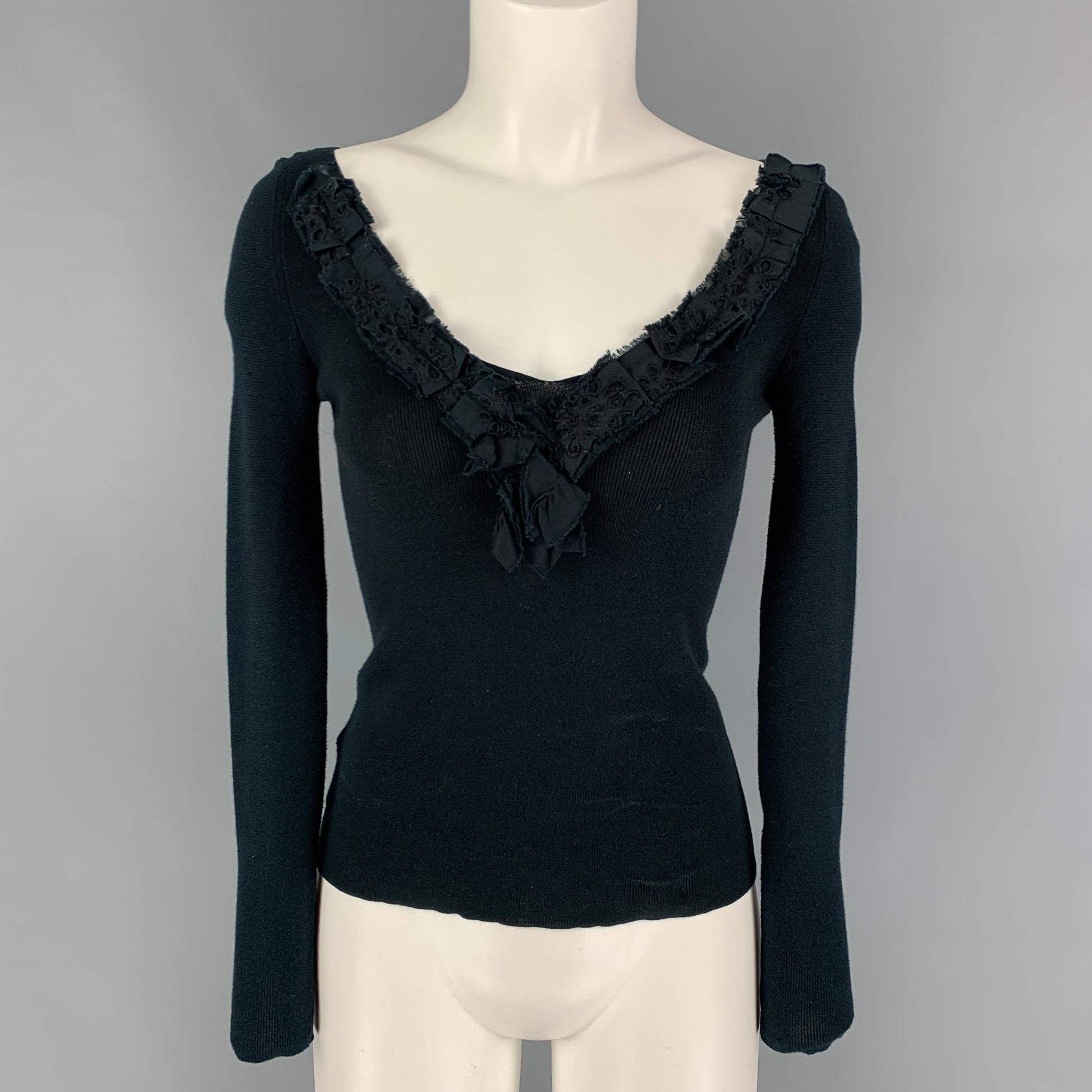 PRADA Size 4 Black Eylet Ribbon Pullover