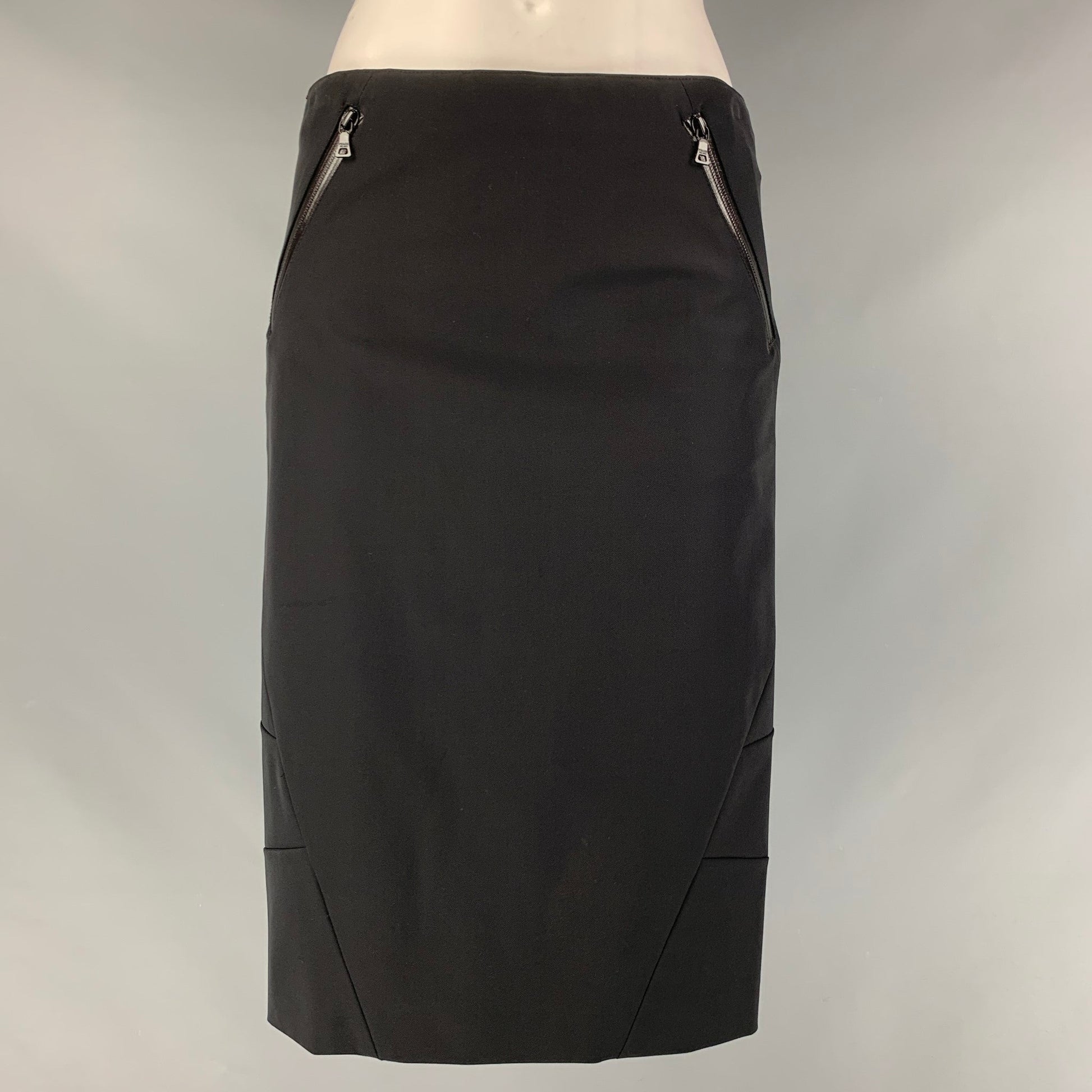 PRADA Size 4 Black Polyester Solid Pencil Skirt