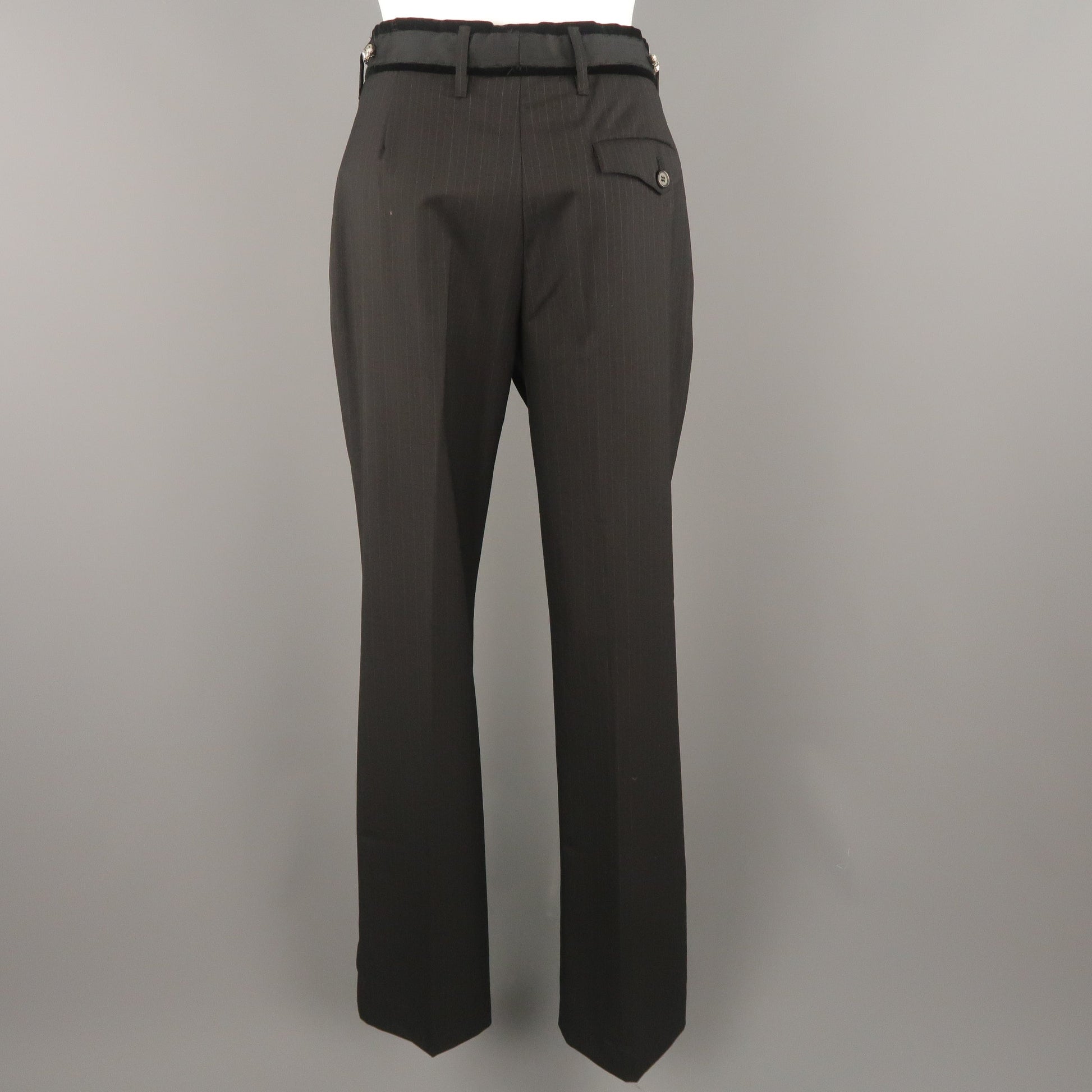 PRADA Size 4 Black Striped Virgin Wool Rhinestone Waistband Dress Pants