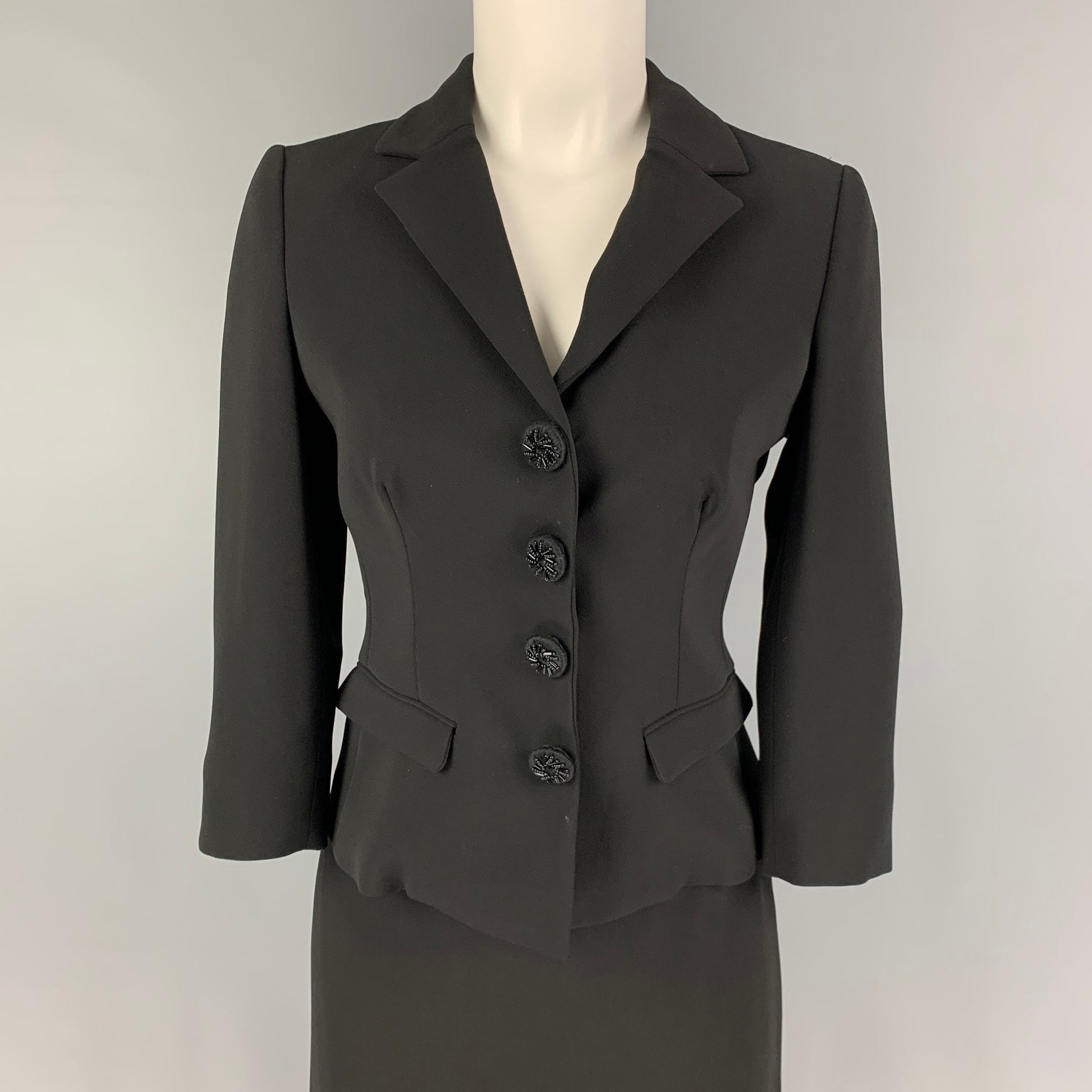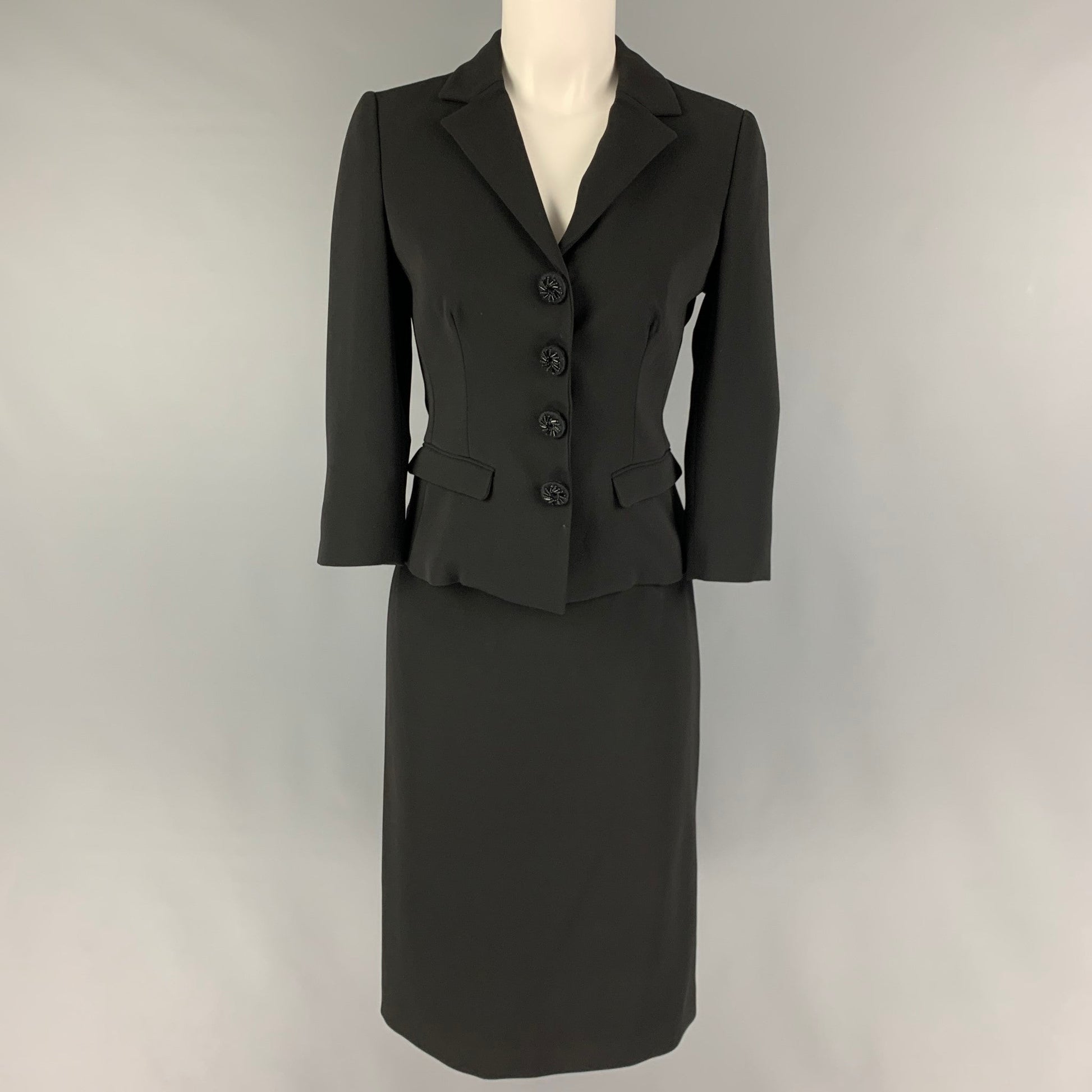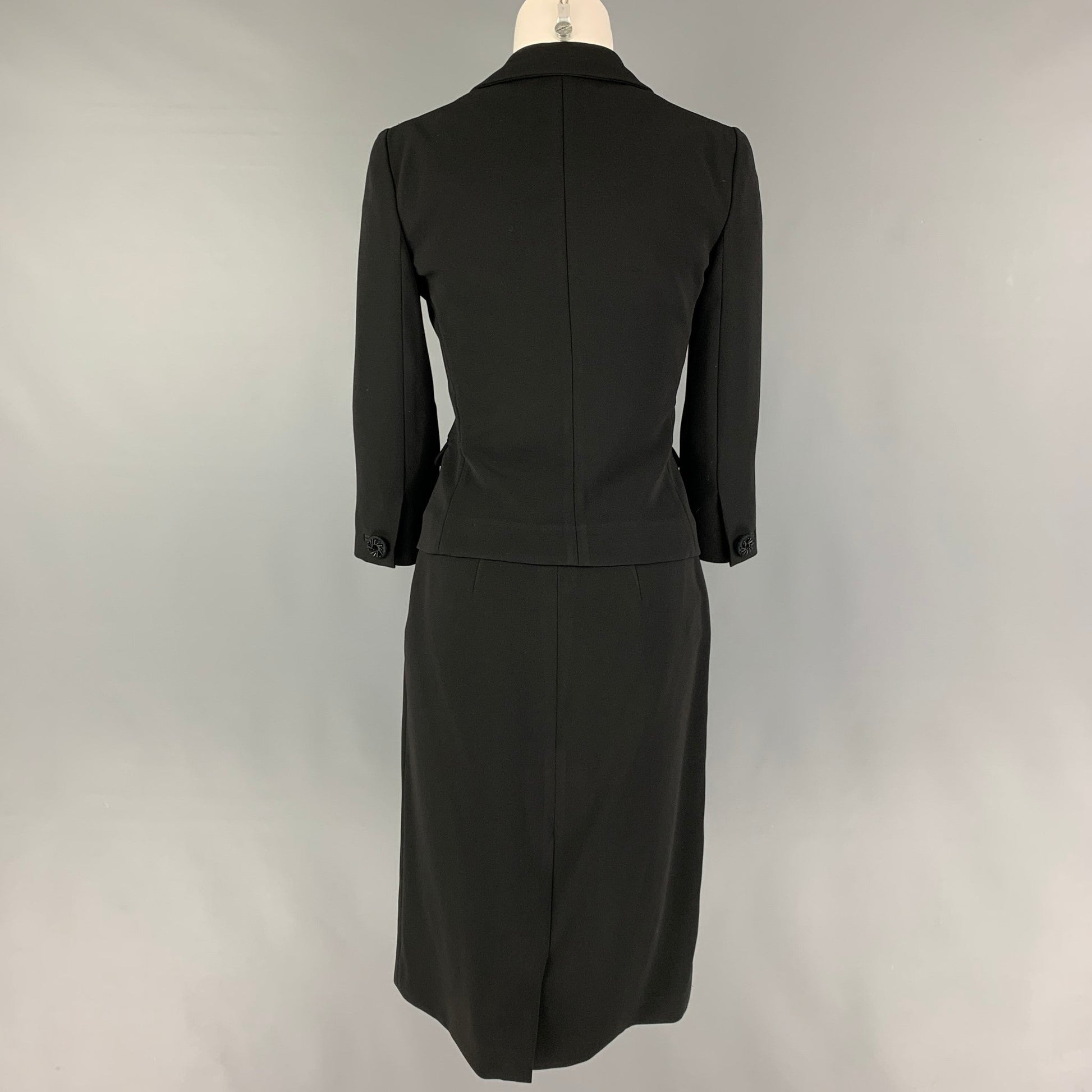 PRADA Size 4 Black Triacetate Blend Single Breasted Skirt Suit