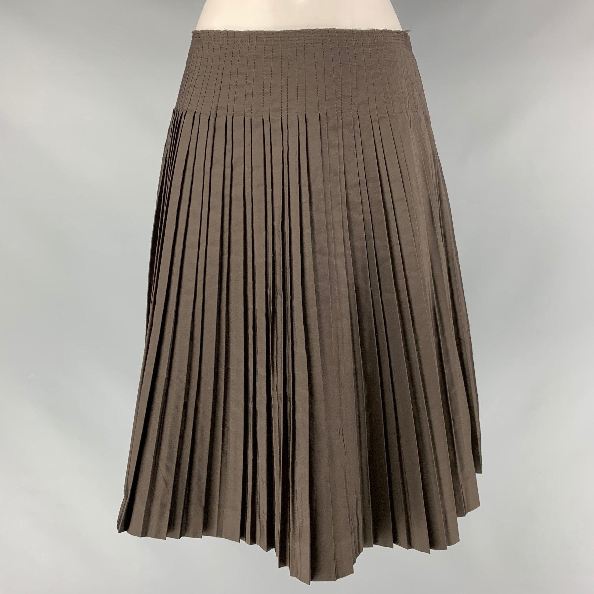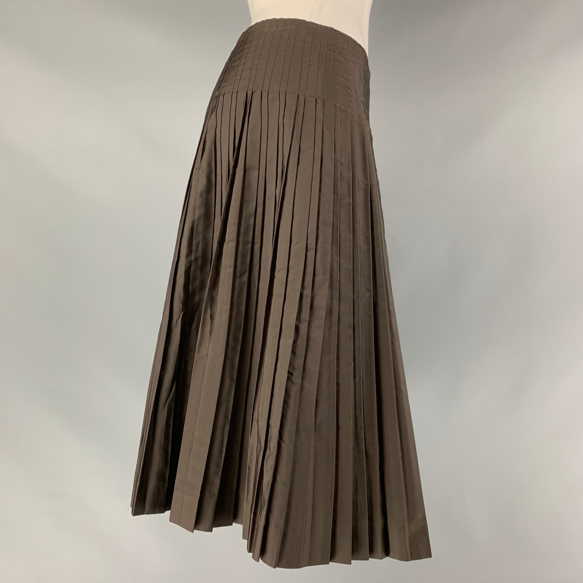 PRADA Size 4 Brown Silk Pleated Circle Skirt