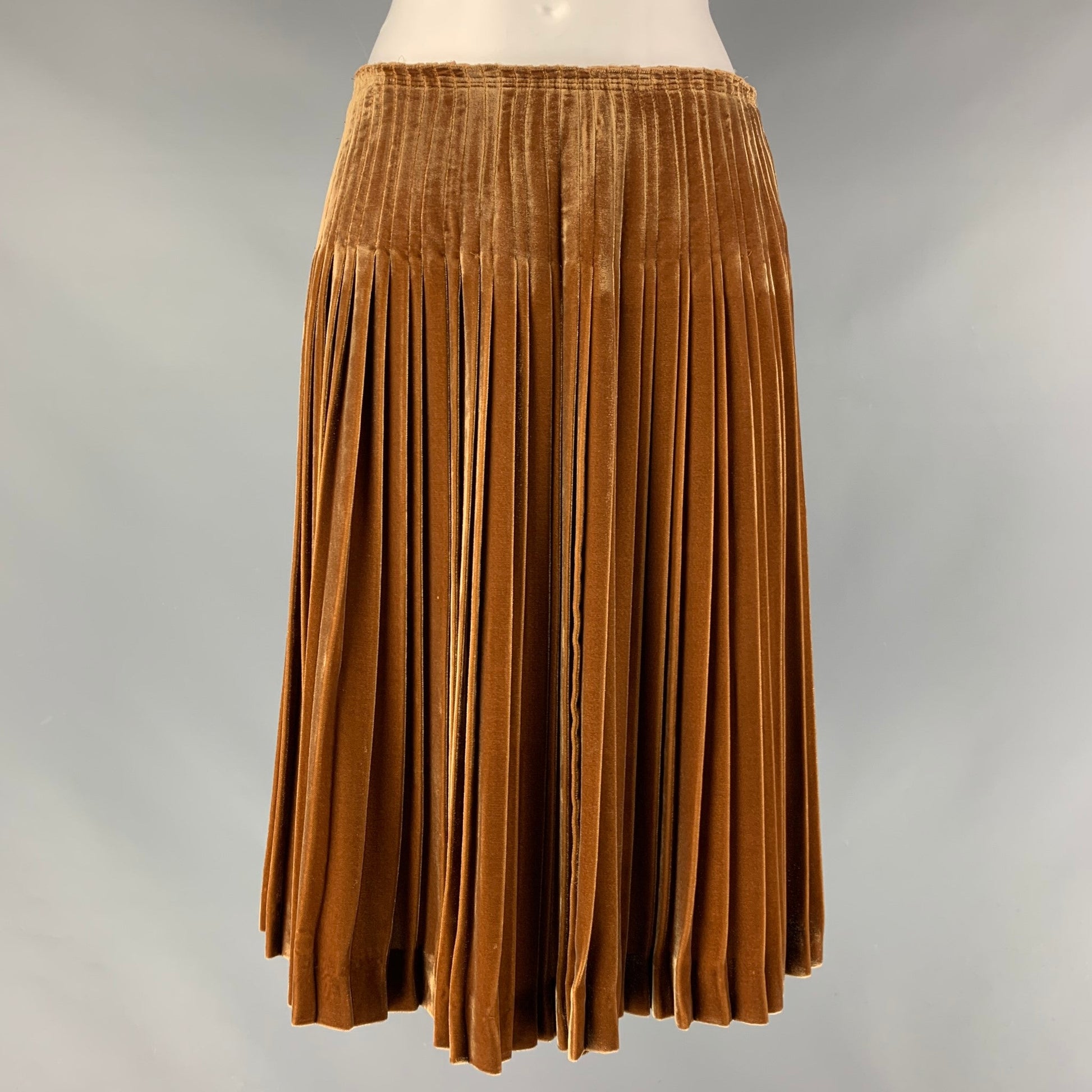 PRADA Size 4 Copper Viscose & Silk Pleated Circle Skirt