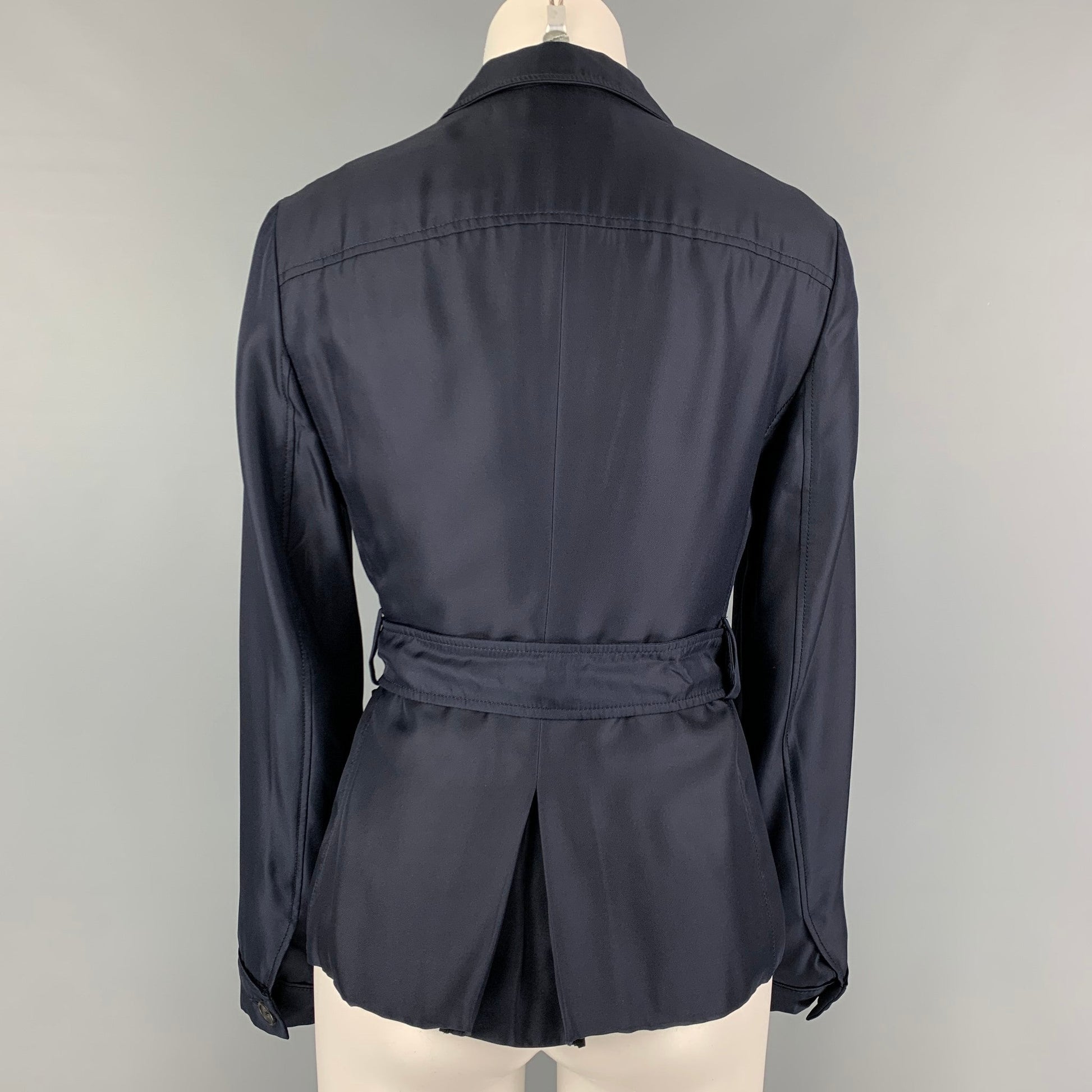 PRADA Size 4 Navy Silk Single Breasted Belted Jacket