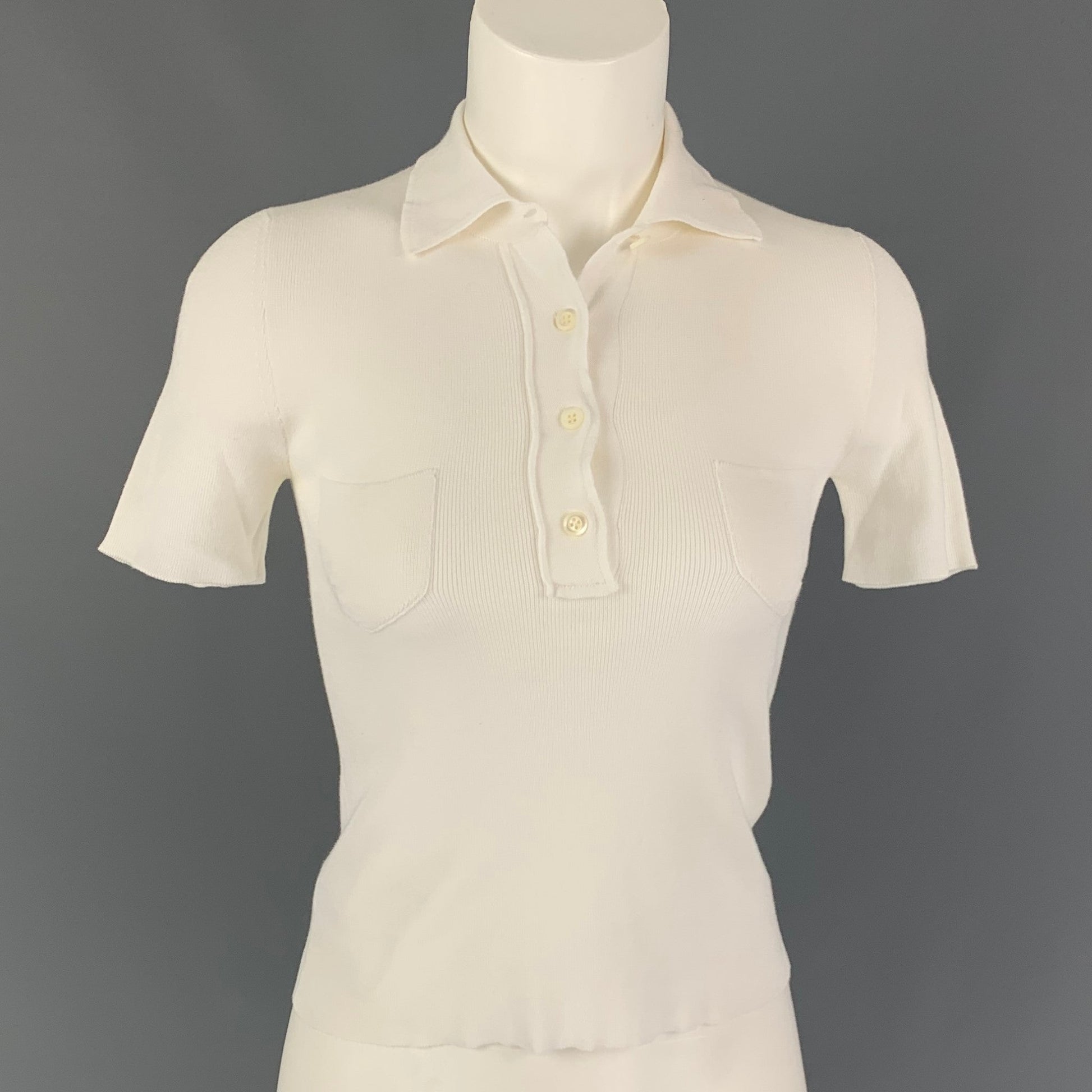 PRADA Size 4 White Cotton Short Sleeve Polo Shirt
