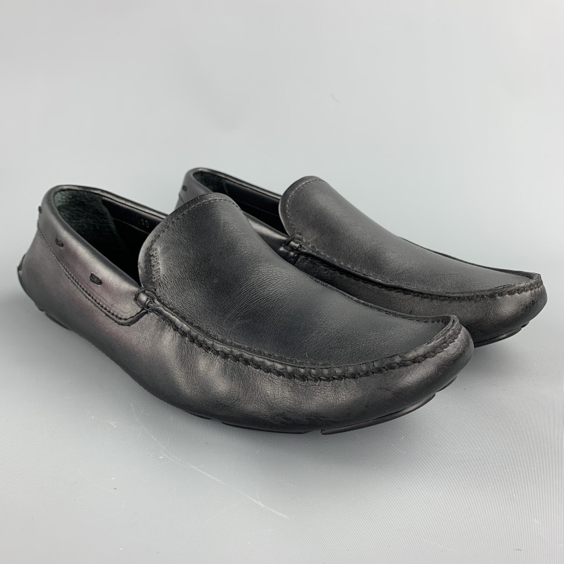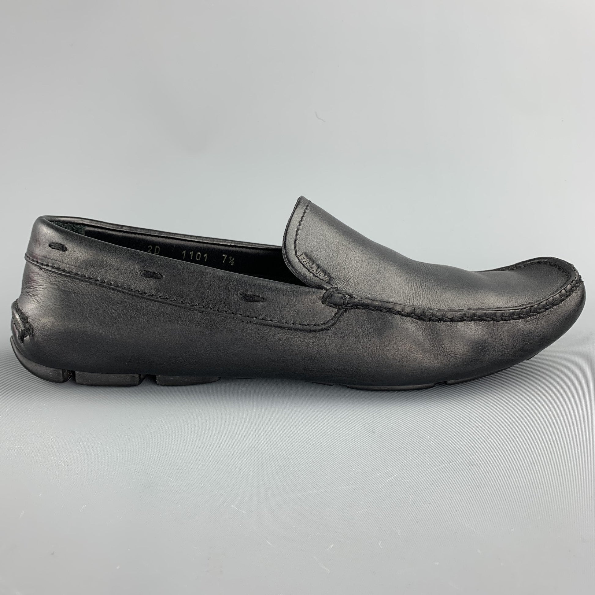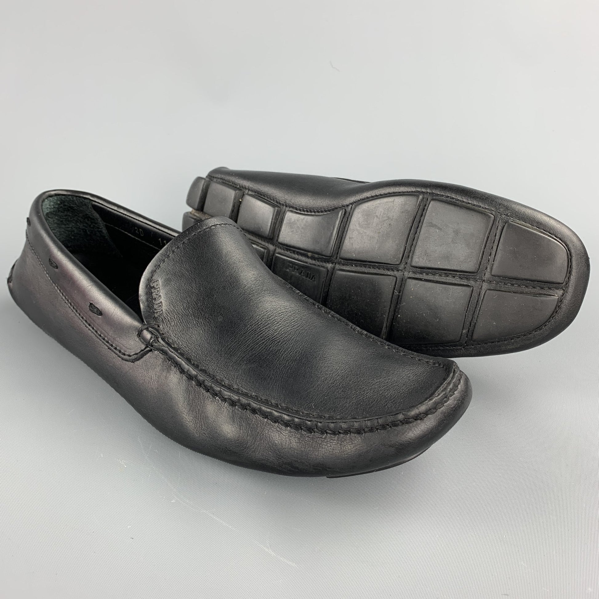 PRADA Size 8.5 Black Leather Drivers Loafers