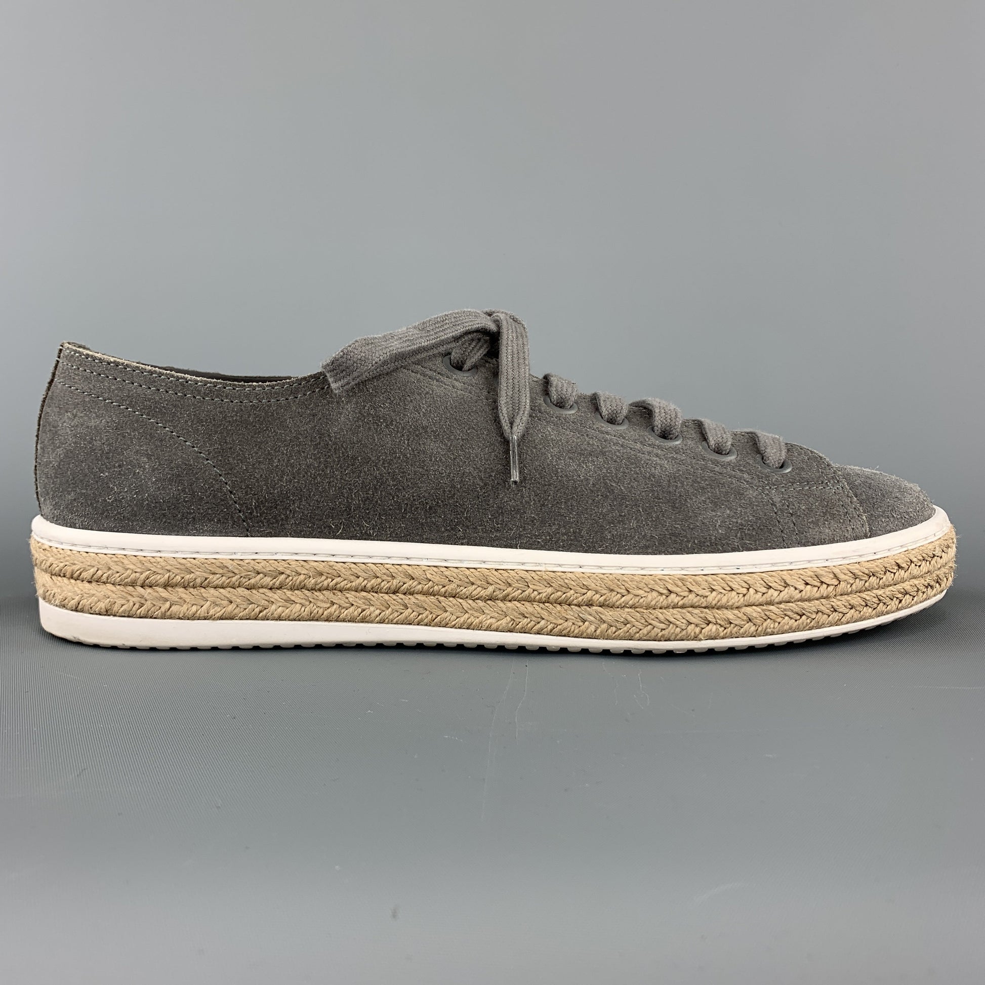 PRADA Size 9.5 Grey Suede Braided Midsole Lace Up Sneakers