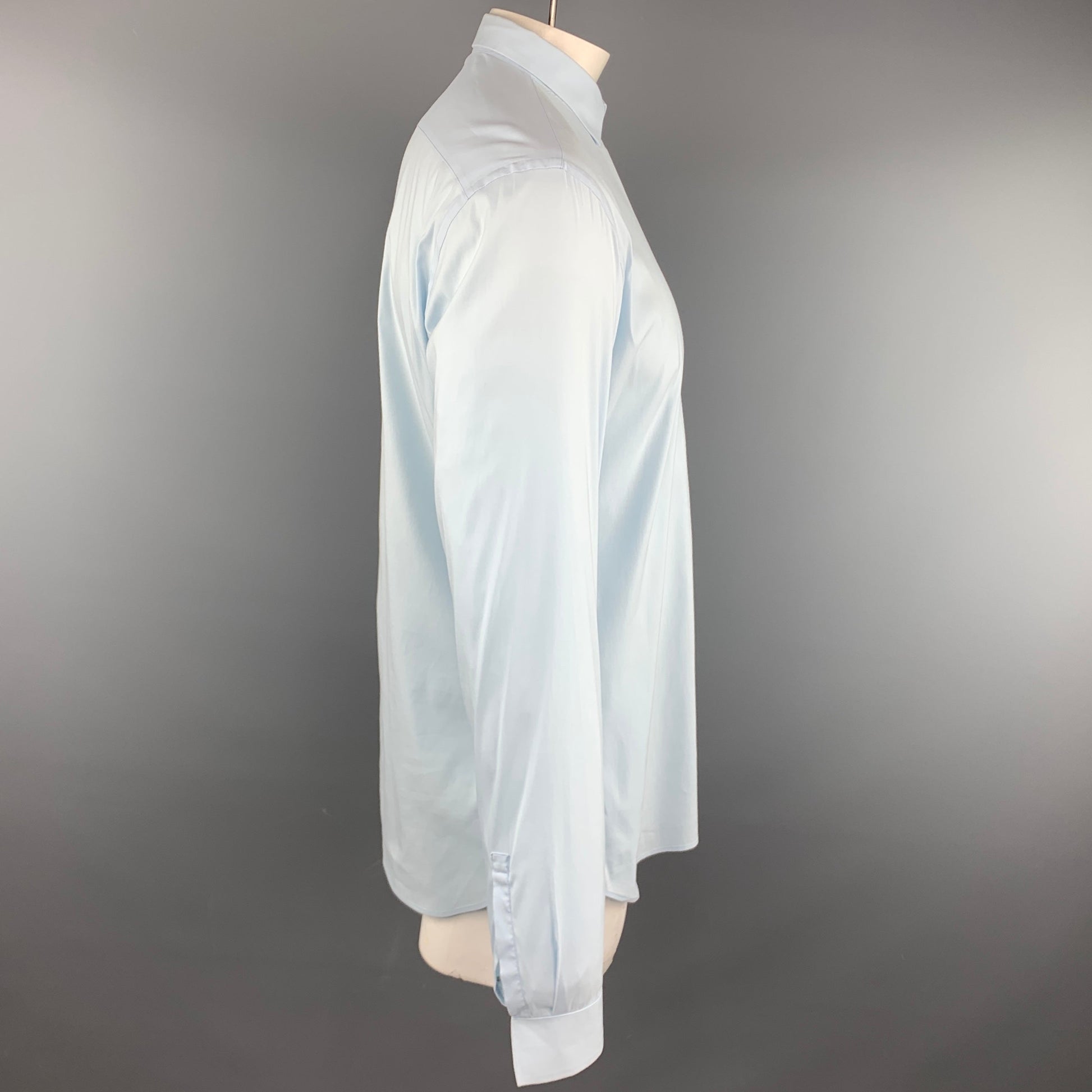 PRADA Size L Light Blue Cotton Blend Button Up Long Sleeve Shirt