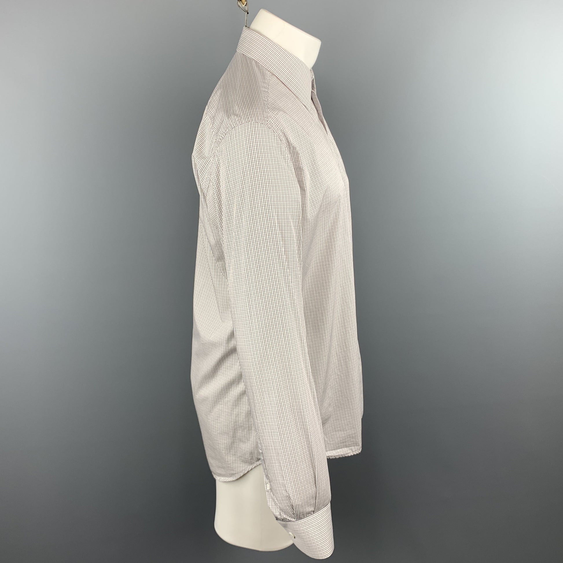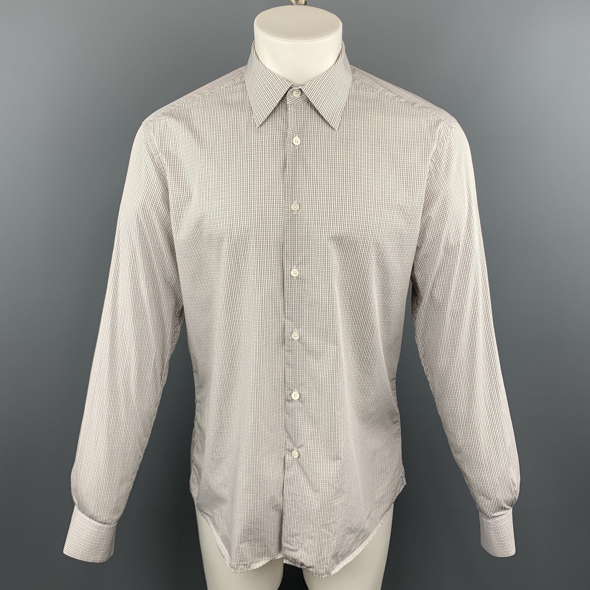 PRADA Size M White Plaid Cotton Button Up Long Sleeve Shirt