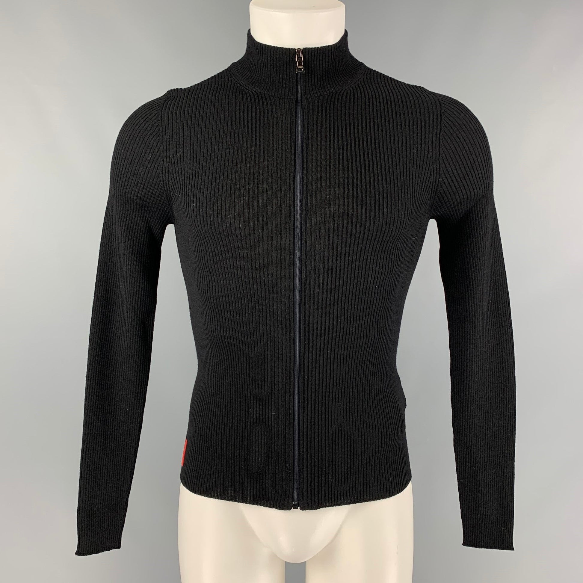PRADA Size S Black Ribbed Wool Zip Up Cardigan