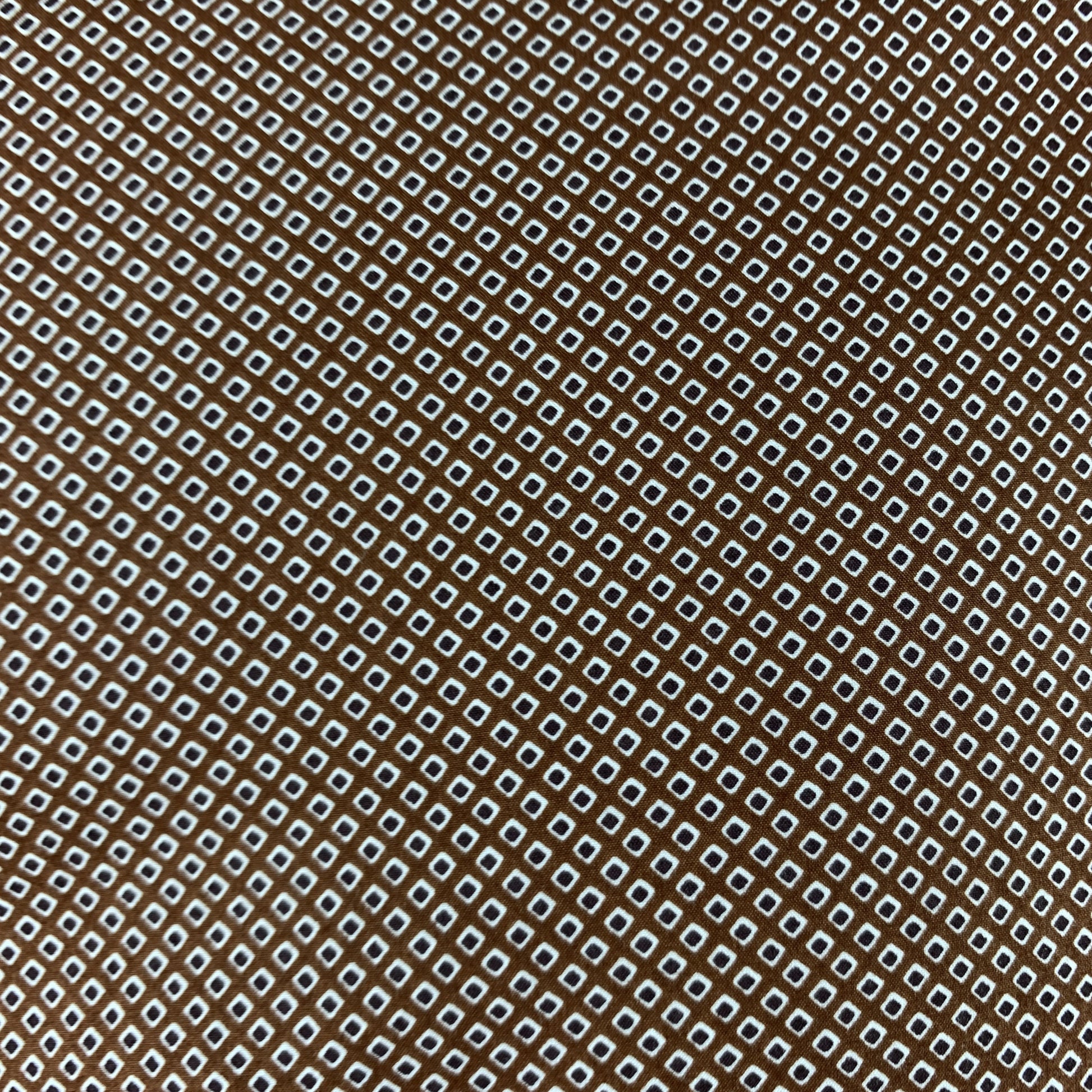 PRADA dress shirt comes in brown cotton with an all over white and navy retro dot print . Made in Italy.
