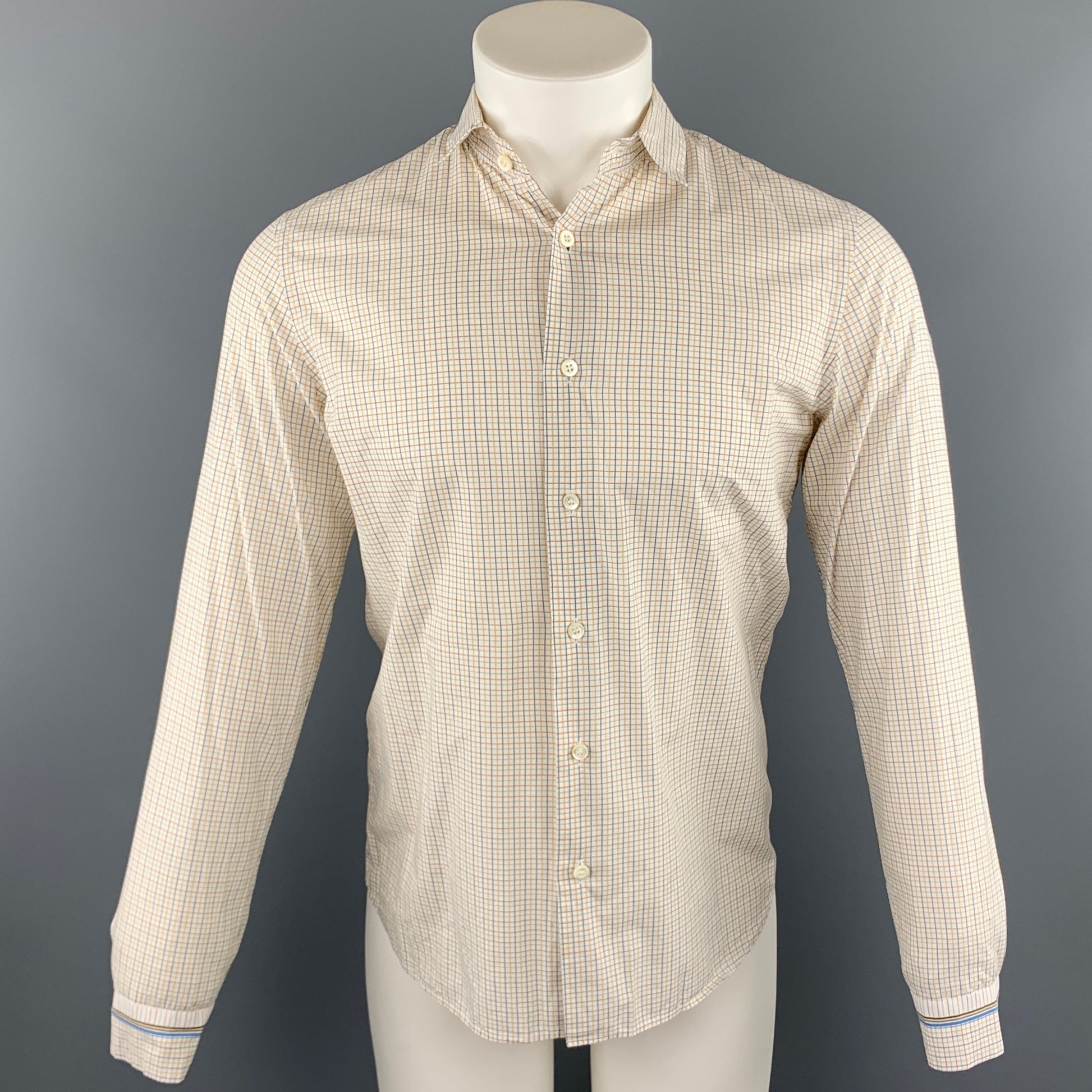 PRADA Size S Yellow Window Pane Cotton Button Up Long Sleeve Shirt