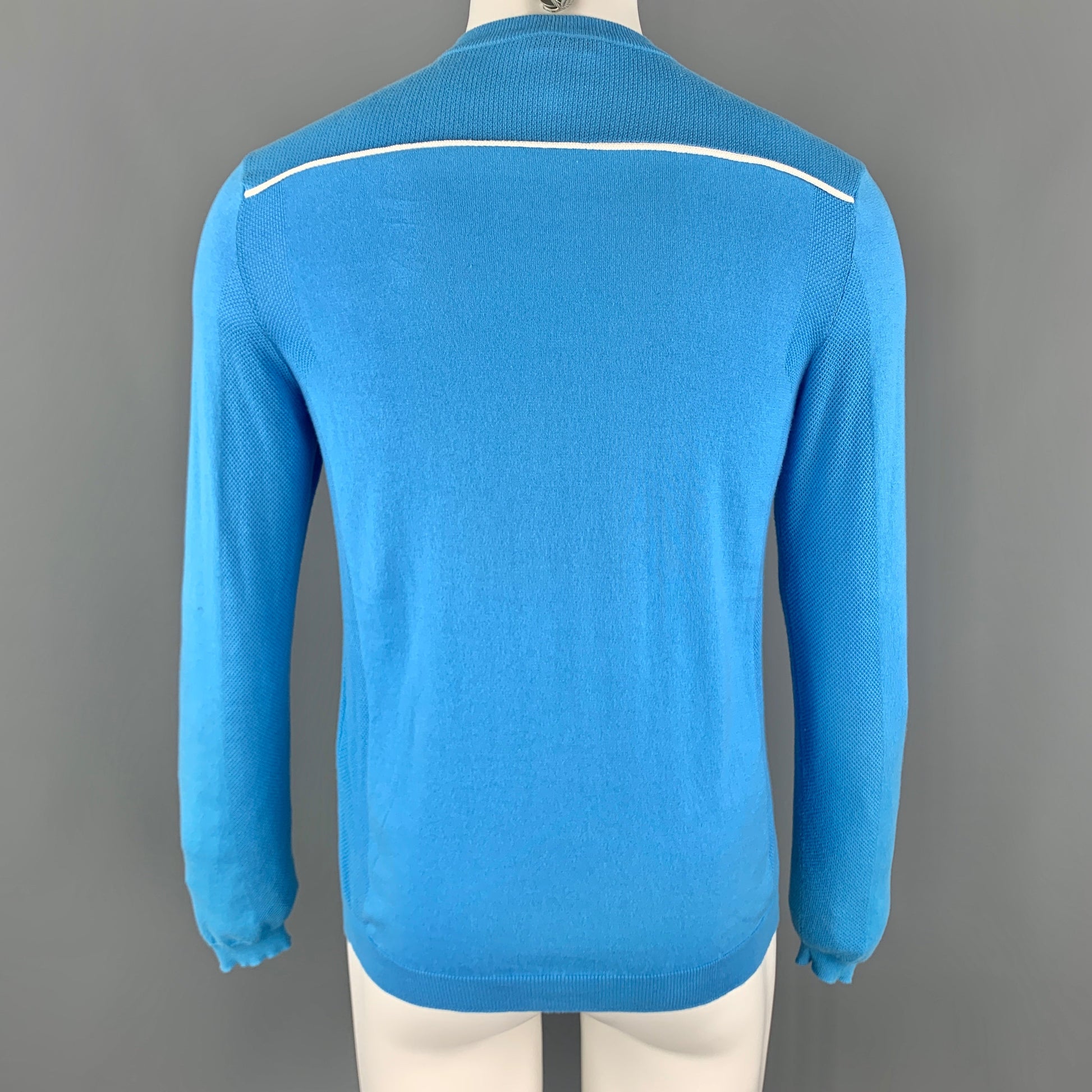 PRADA Size XS Aqua Cotton Crew-Neck White Trim Pullover Sweater