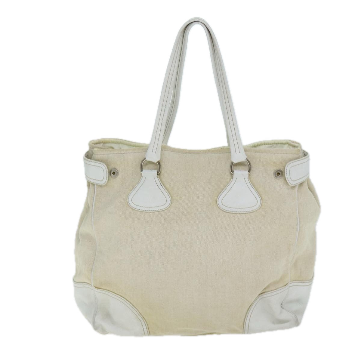 PRADA Tote Bag Canvas Leather Beige bs15608