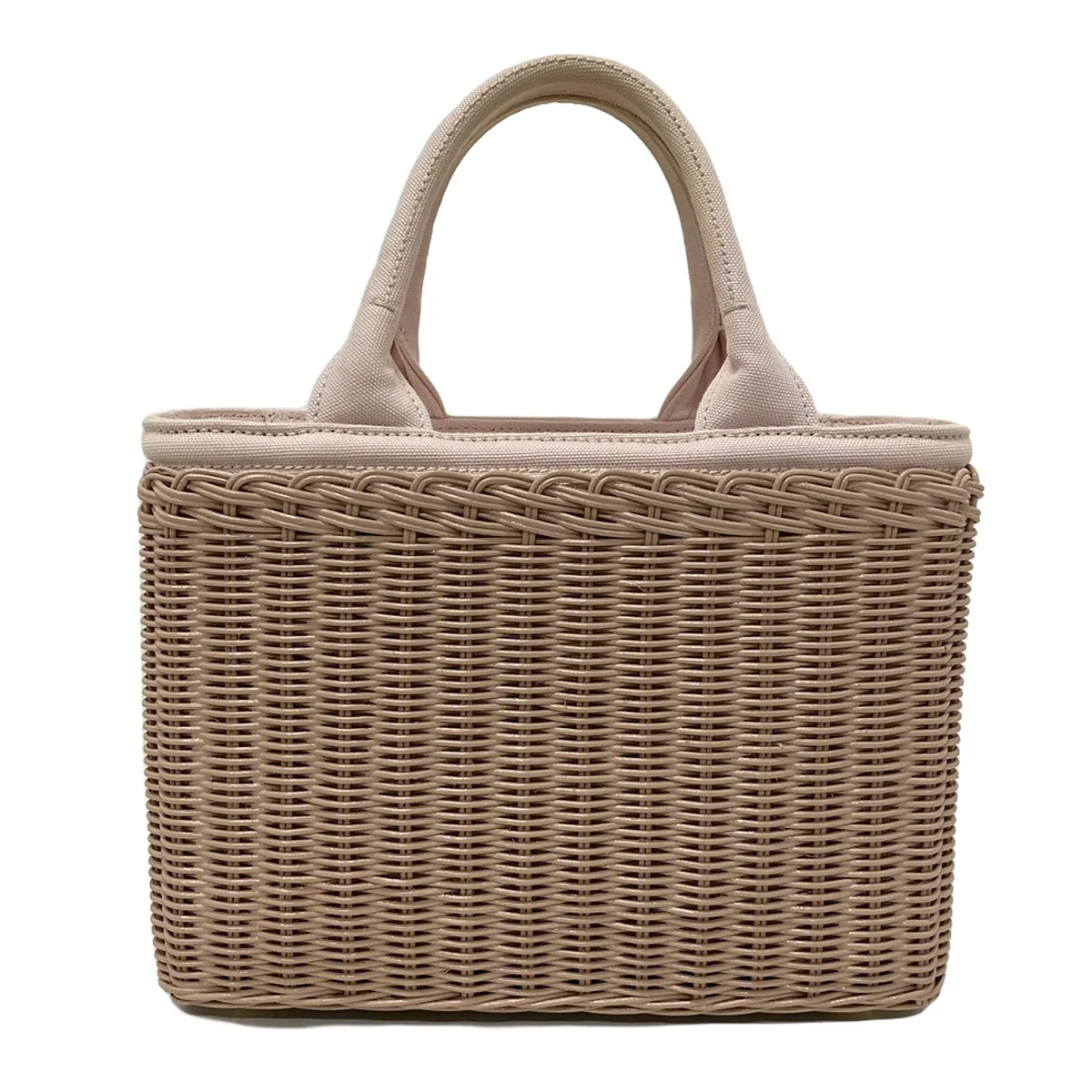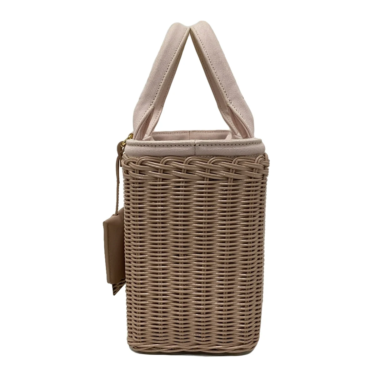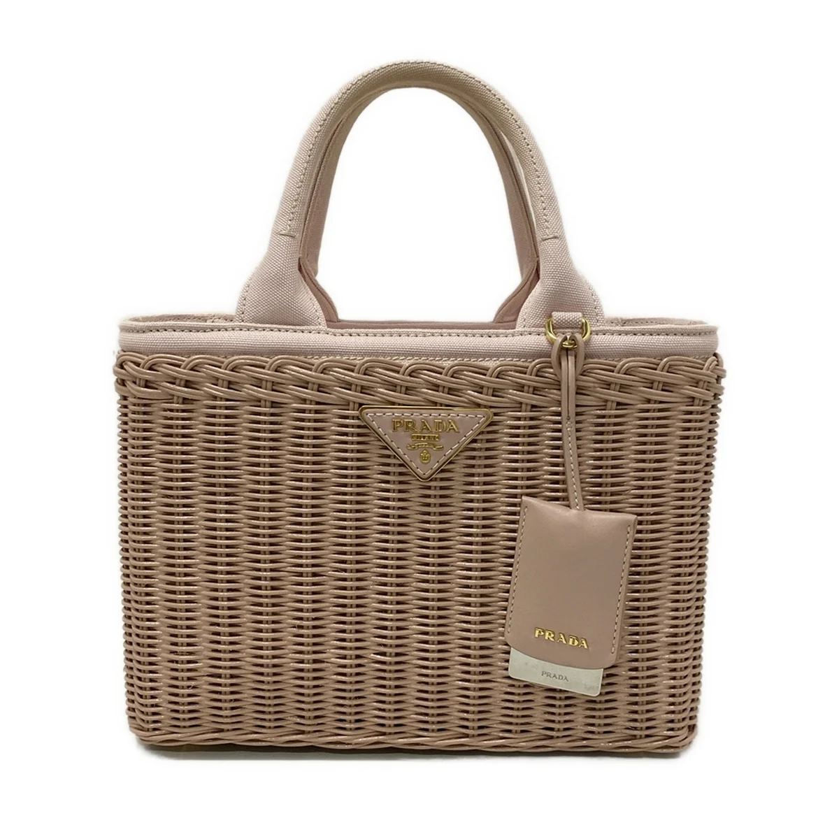 PRADA - Wicker Pink Rattan Canvas Leather Crossbody Bag