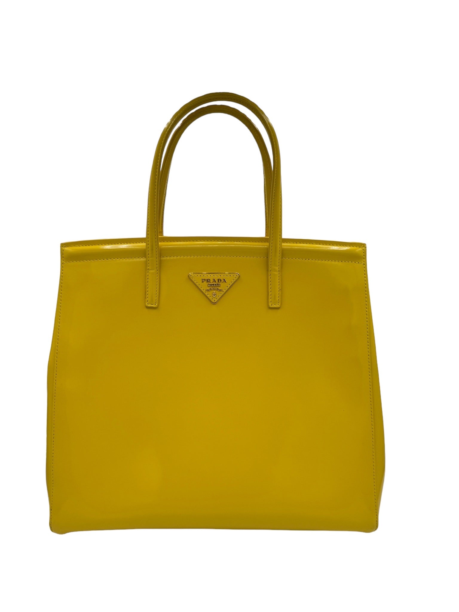 Overall, this Prada Yellow Patent Leather Tote Bag is still in good condition with only slight signs of wear that do not affect its functionality or style!
