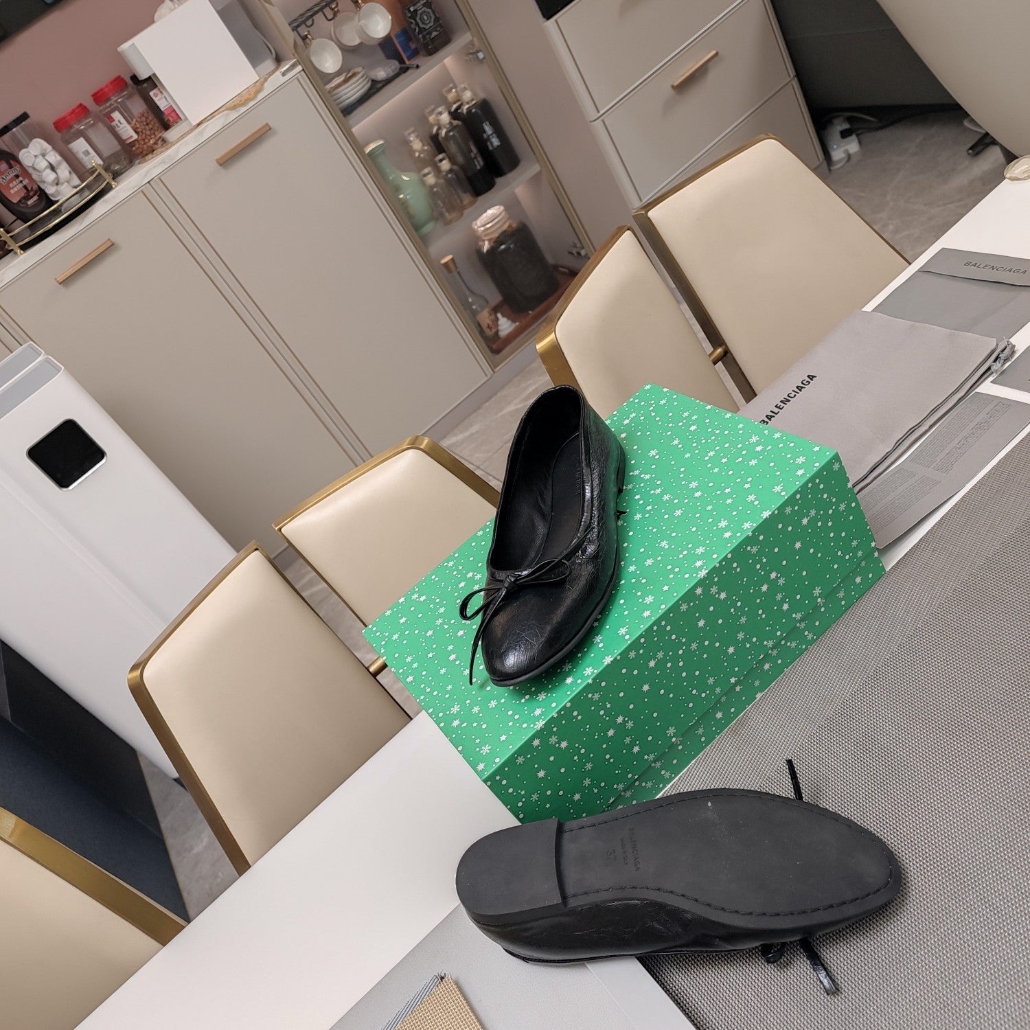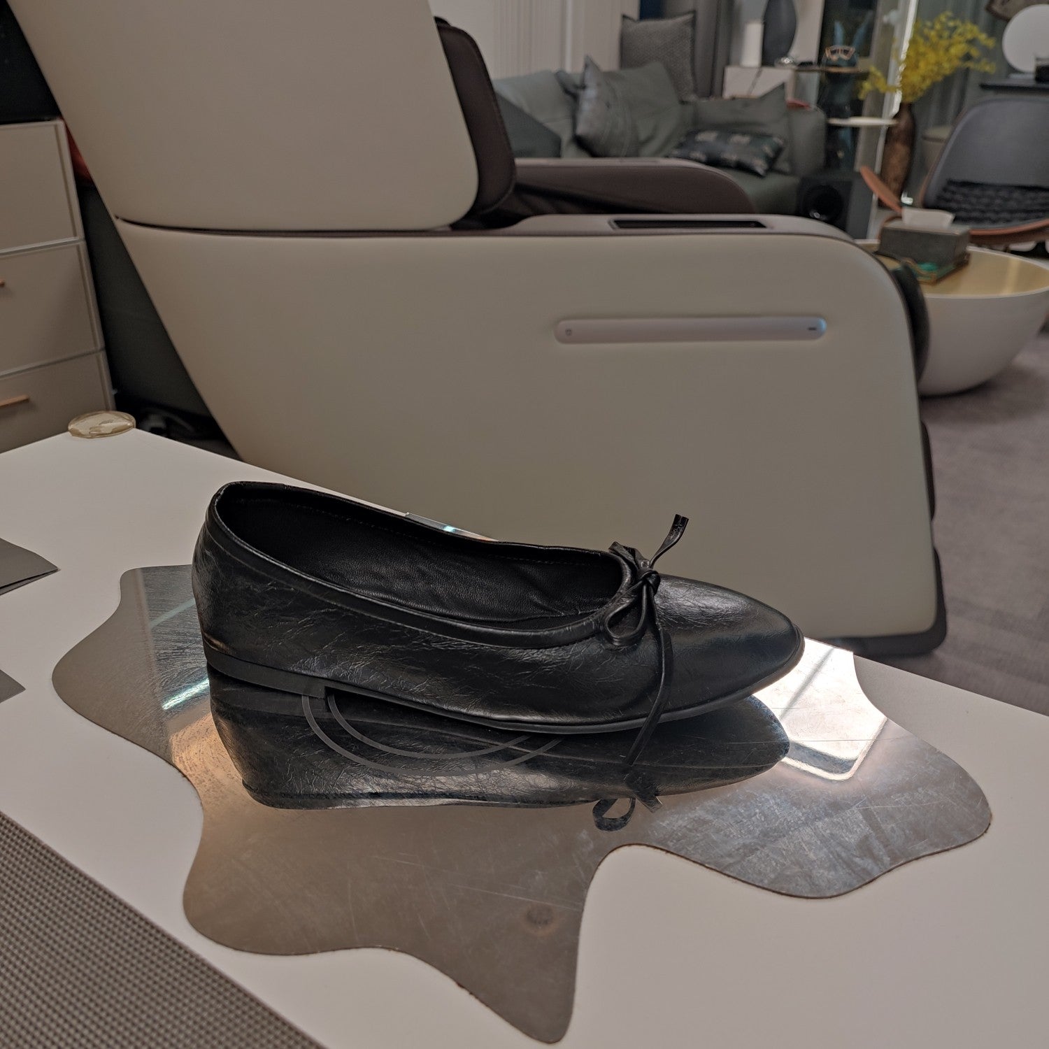Balanciaga RHINESTONE BALLET FLATS WITH BOW IN BLACK WAX-OIL SHEEPSKIN