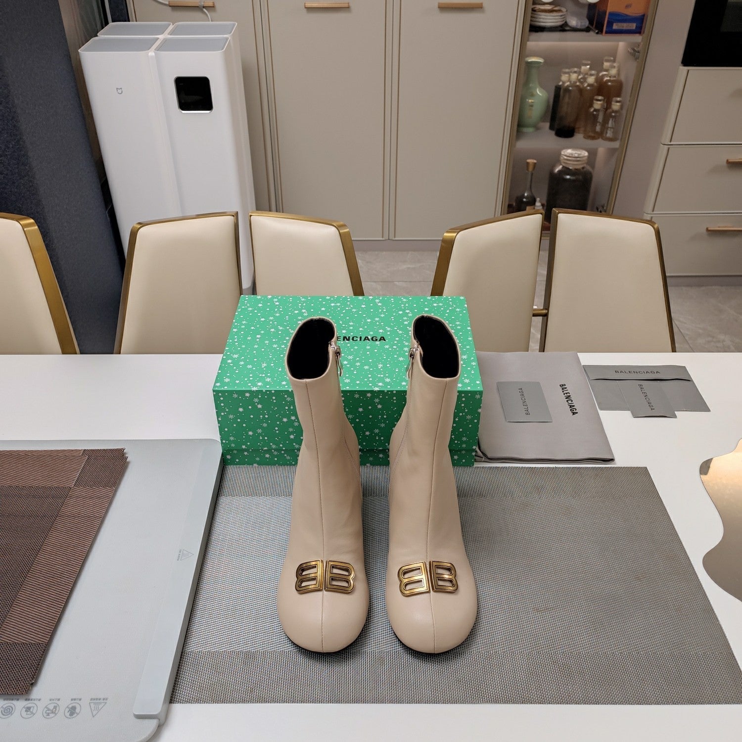 Balanciaga ROUND-TOE HIGH HEEL BOOTS IN BEIGE SMOOTH LAMBSKIN
