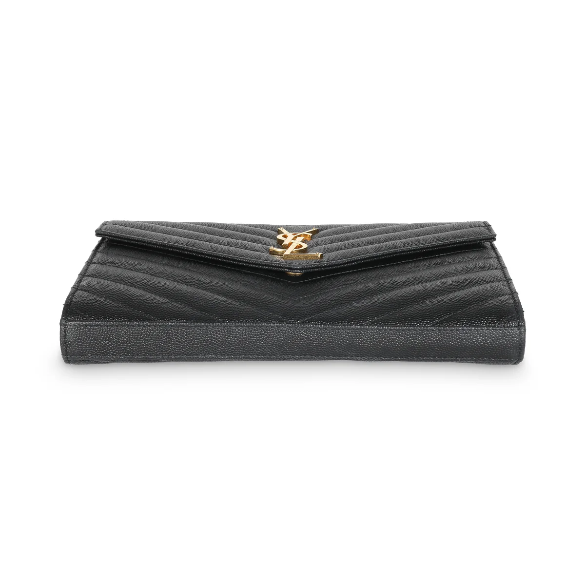 This SAINT LAURENT Black Grain De Poudre Cassandre Wallet On Chain is a stylish and versatile accessory.