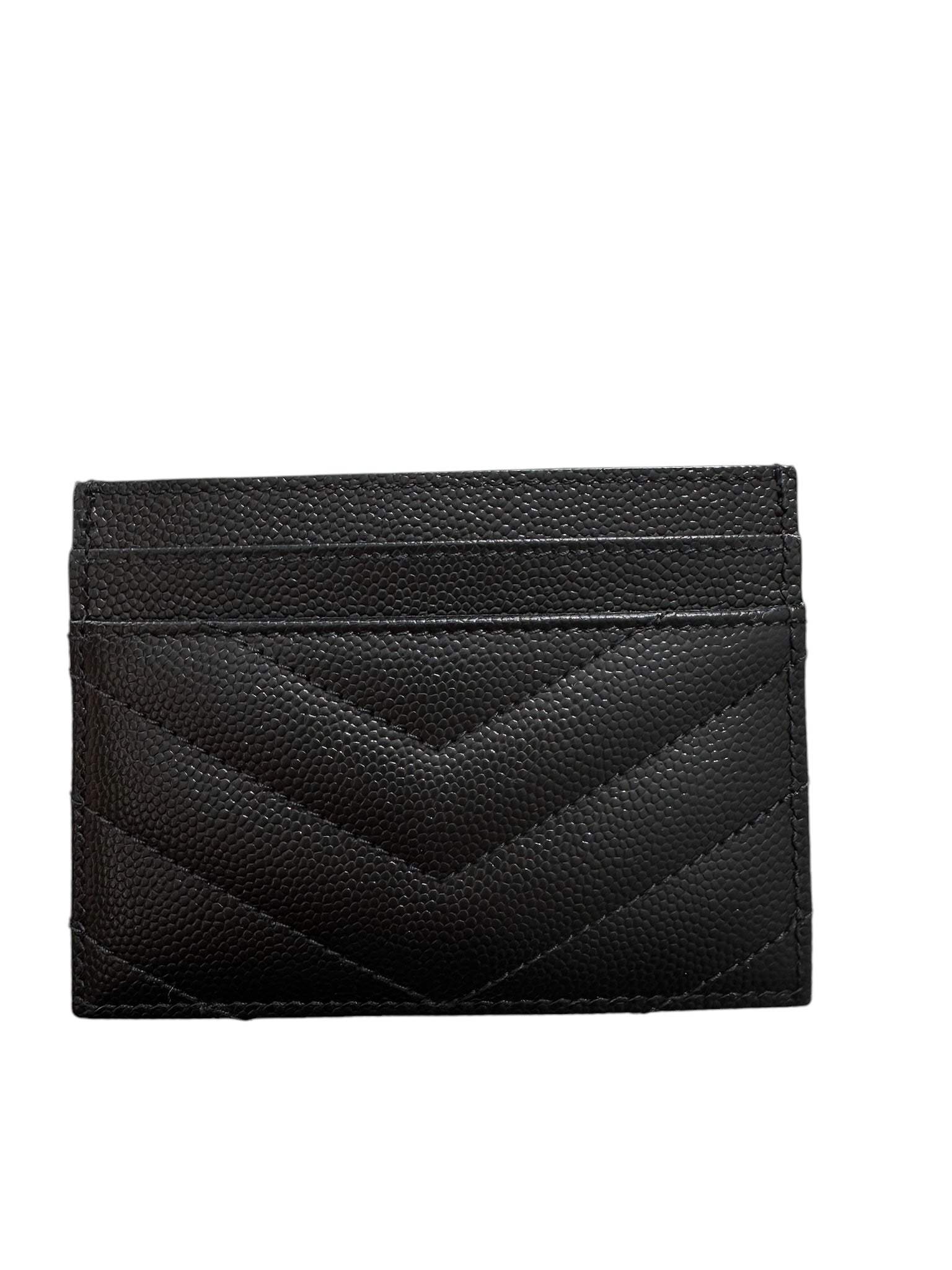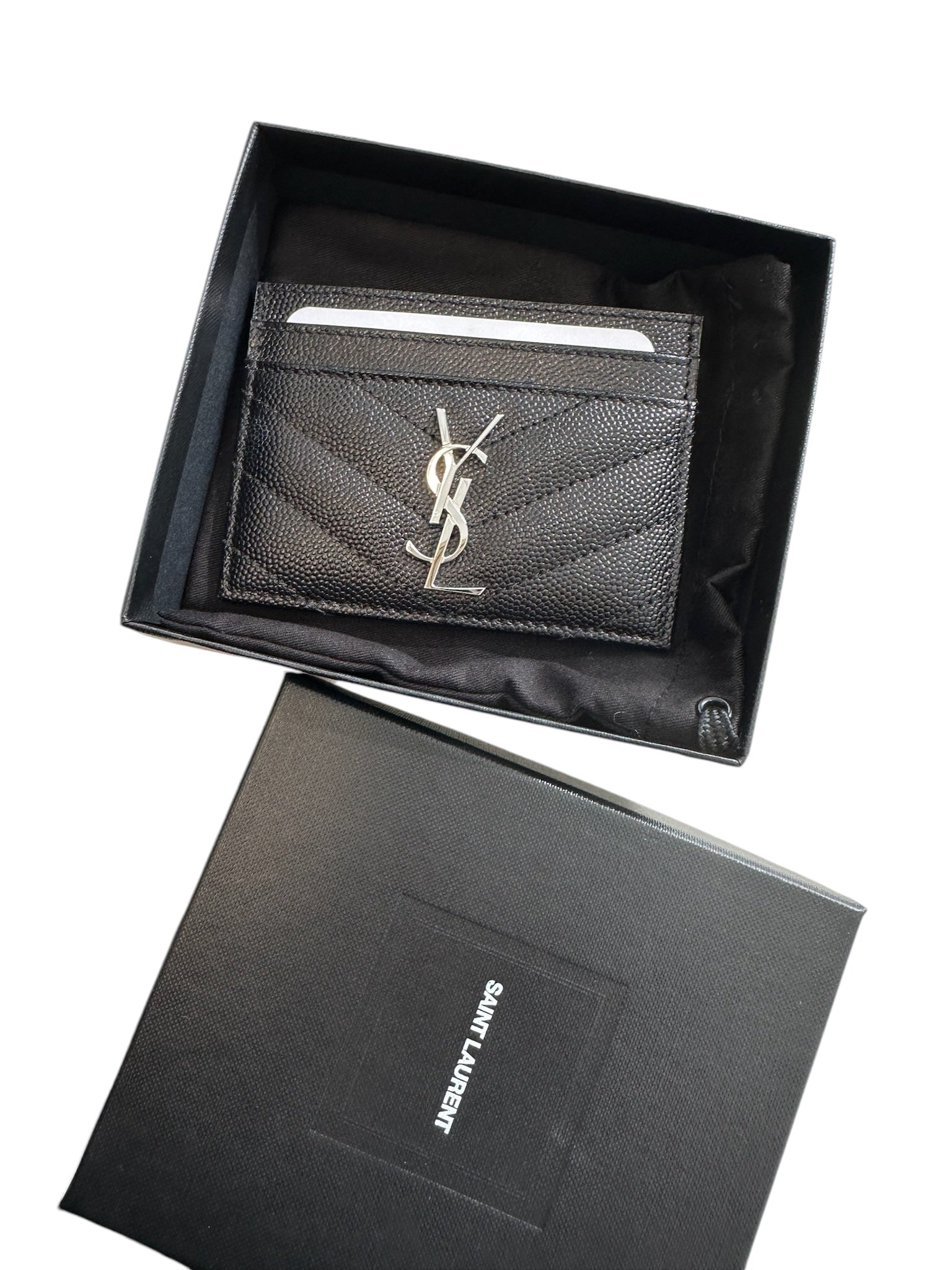 Elevate your everyday essentials with the SAINT LAURENT Black Leather Cardholder. Crafted with high-quality leather and featuring sleek silver toned hardware, this cardholder exudes luxury and sophistication. Keep your cards organized in style and make a lasting impression.