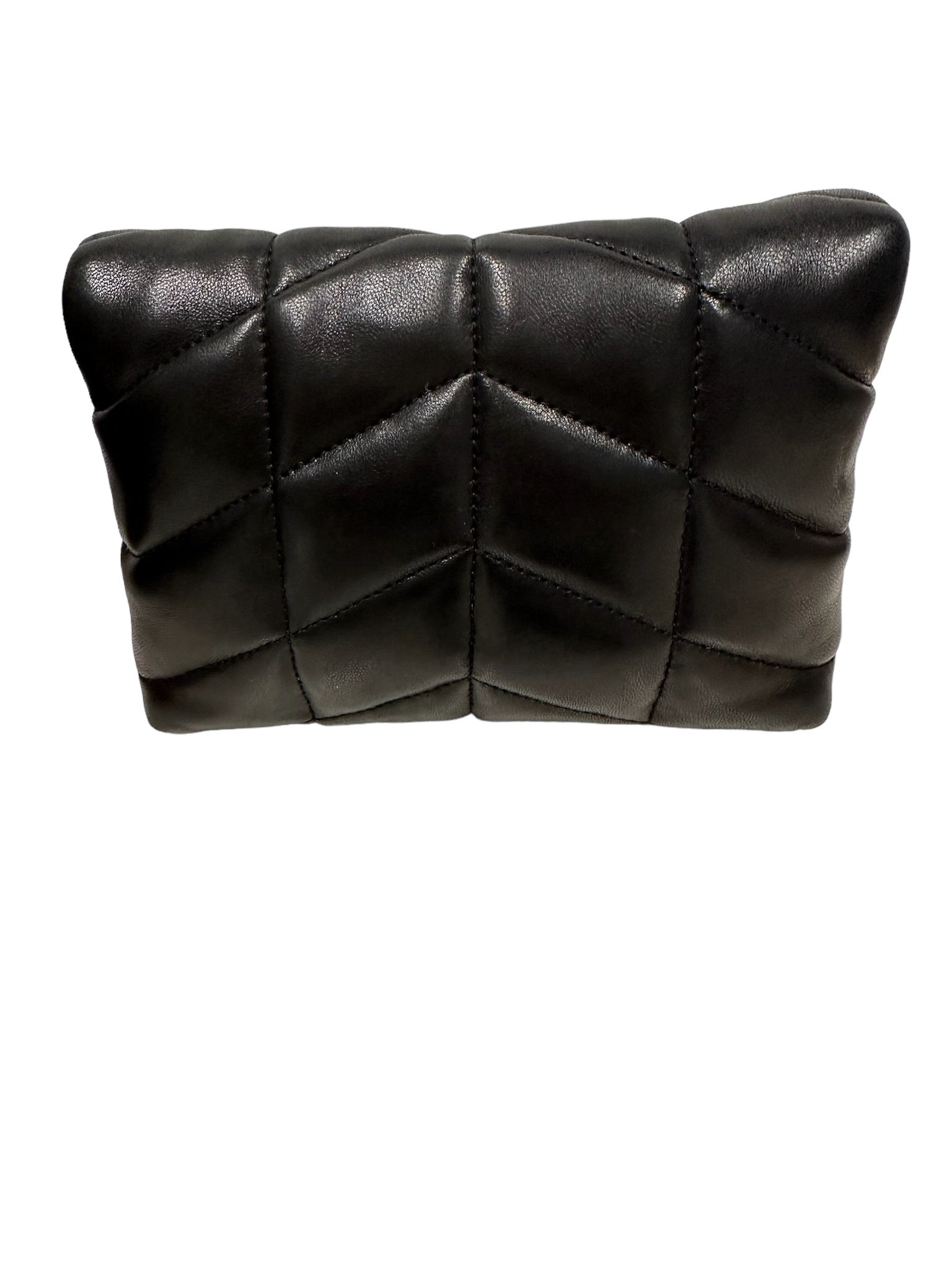 Experience luxury with the SAINT LAURENT - Black Matelasse Labskin Mini Loulou Puffer Pouch. The sleek black toned hardware adds a touch of elegance to this mini puffer pouch. Perfect for any occasion, this pouch is both stylish and functional. Elevate your accessory game with this must-have piece!