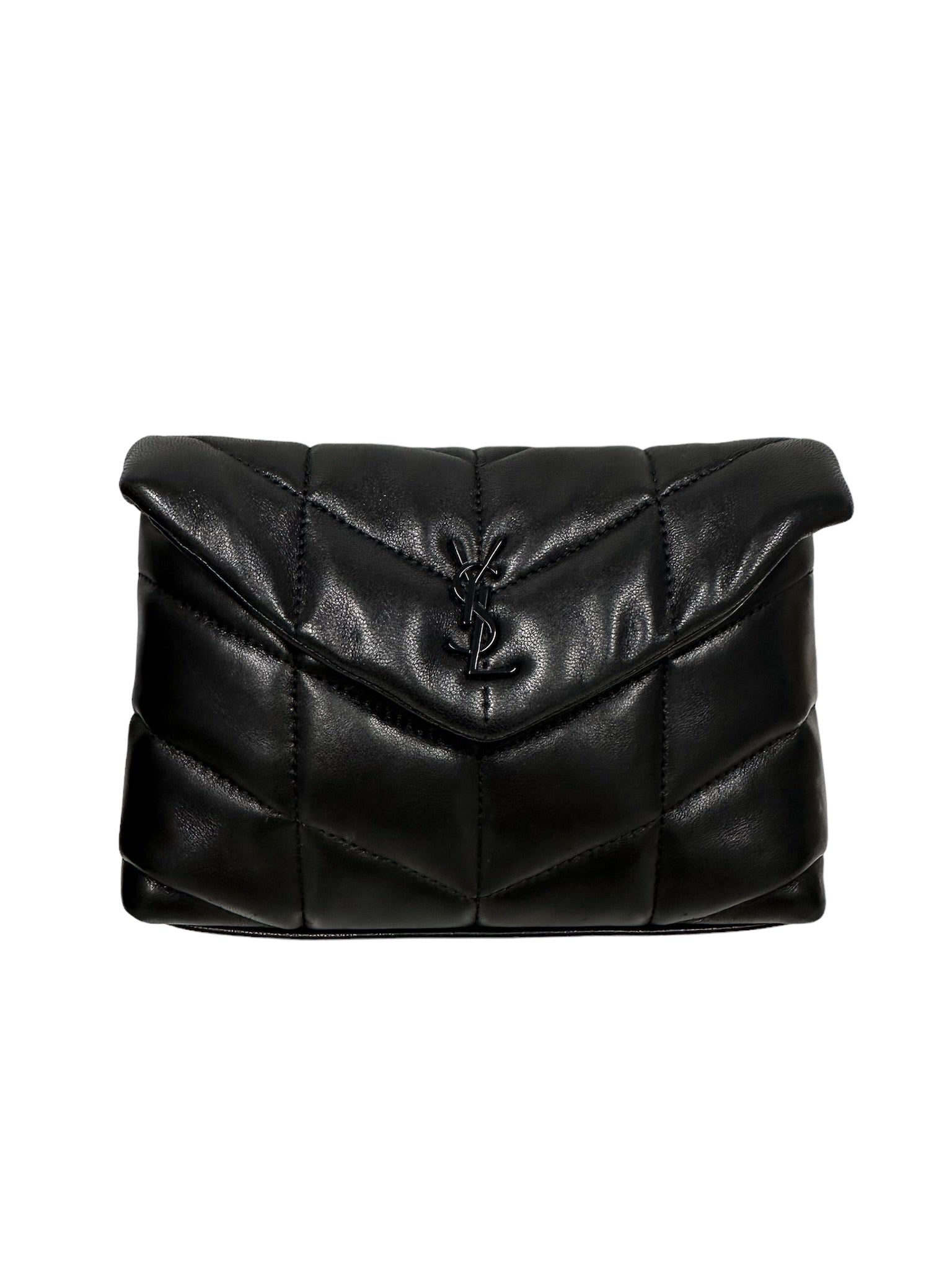 SAINT LAURENT - Black Matelasse Labskin Mini Loulou Puffer Pouch