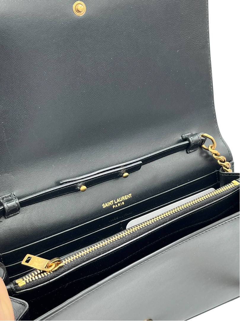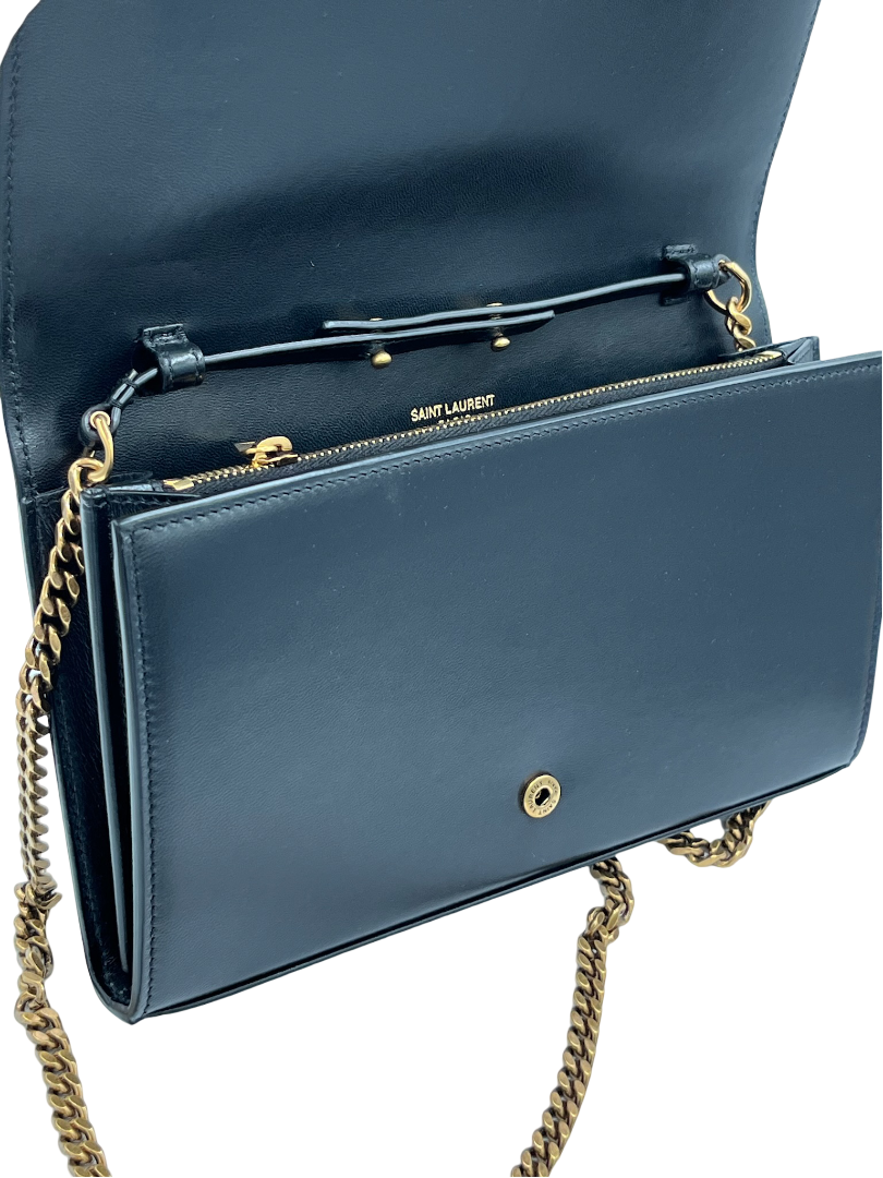 This SAINT LAURENT black tri tones Kate crossbody bag is a must-have for any fashion-forward individual looking for a stylish and practical accessory.
