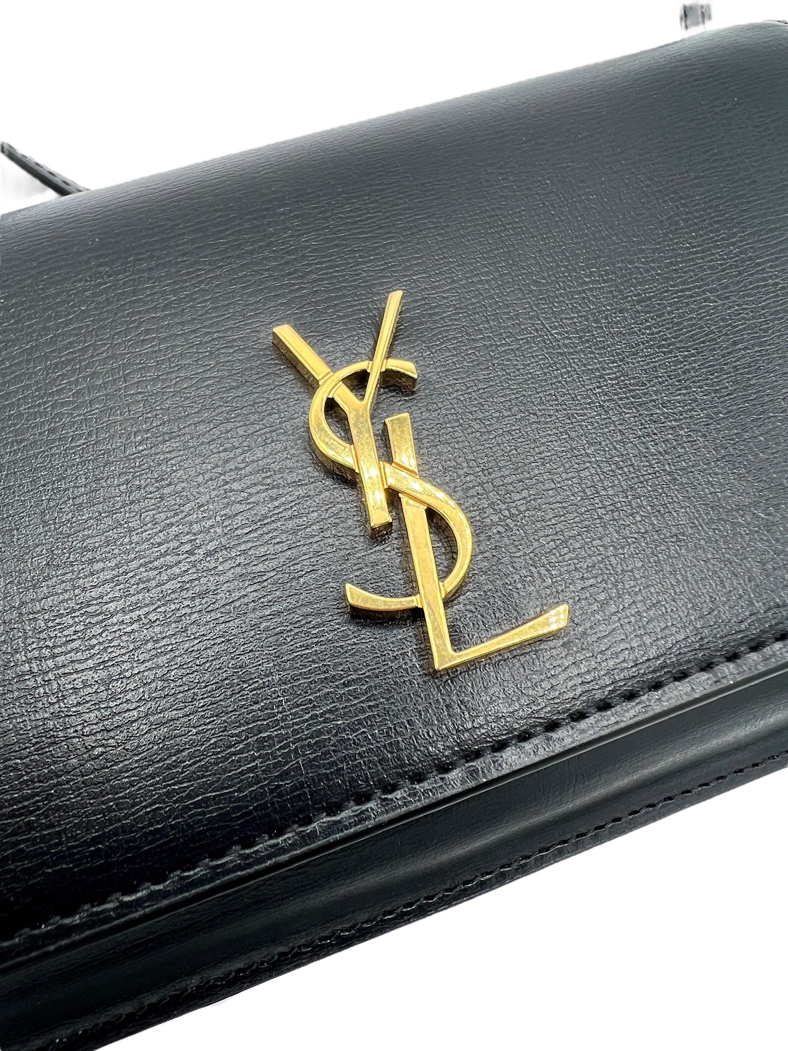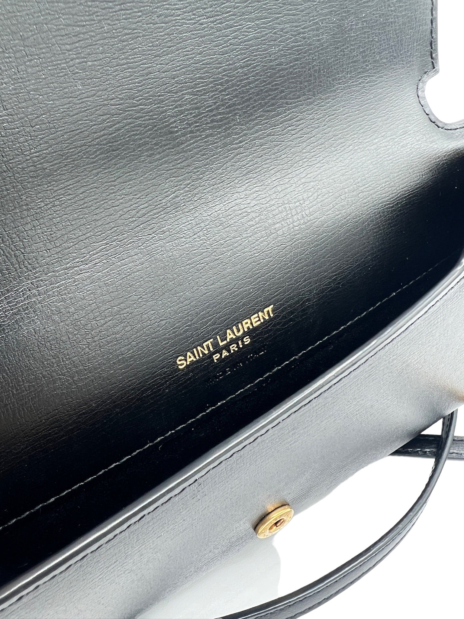 This stylish and versatile SAINT LAURENT Black WOC Crossbody Bag is a must-have for any fashion-conscious individual. Made from high-quality leather, this bag boasts a sleek and timeless design that is perfect for any occasion.