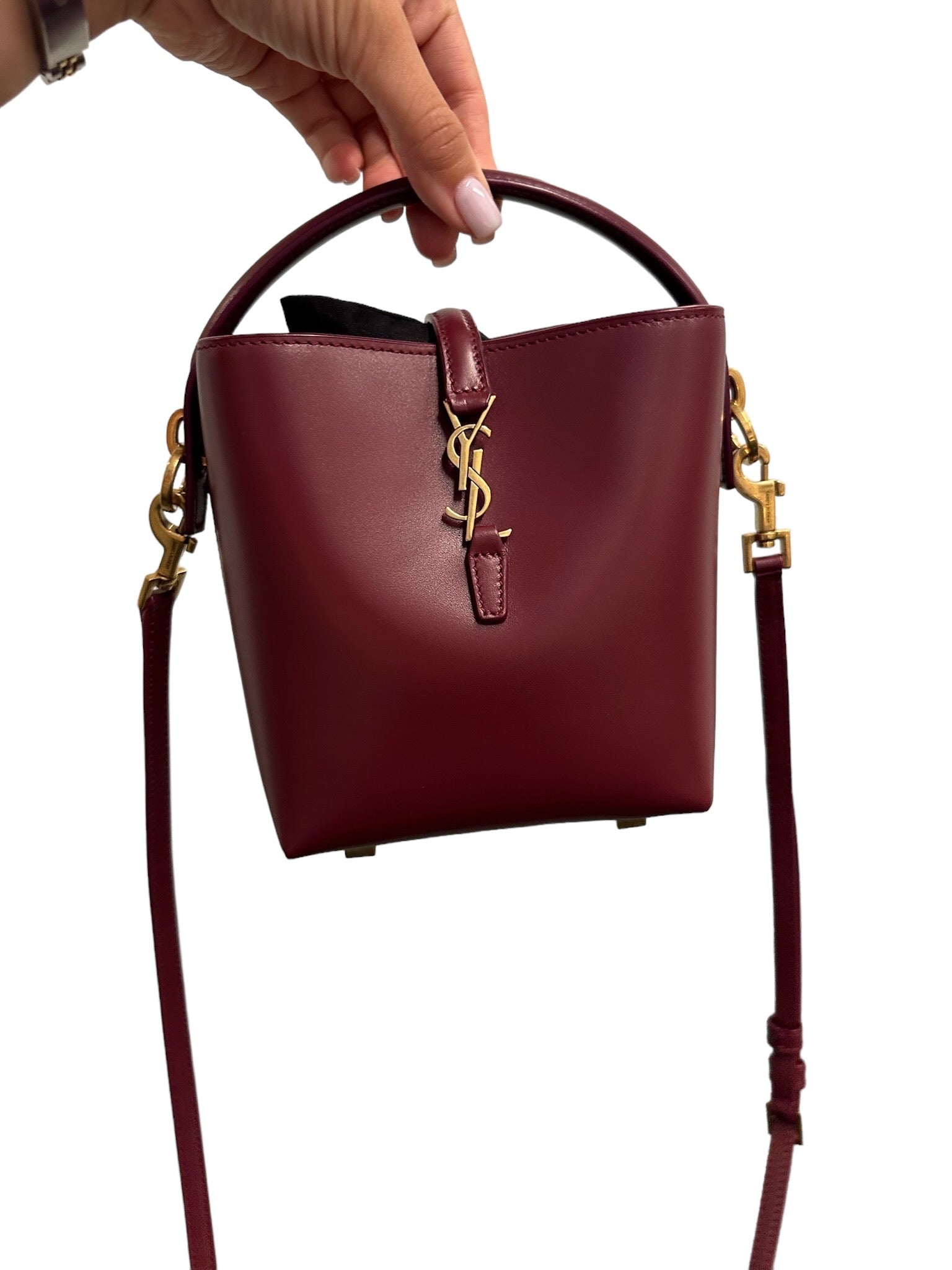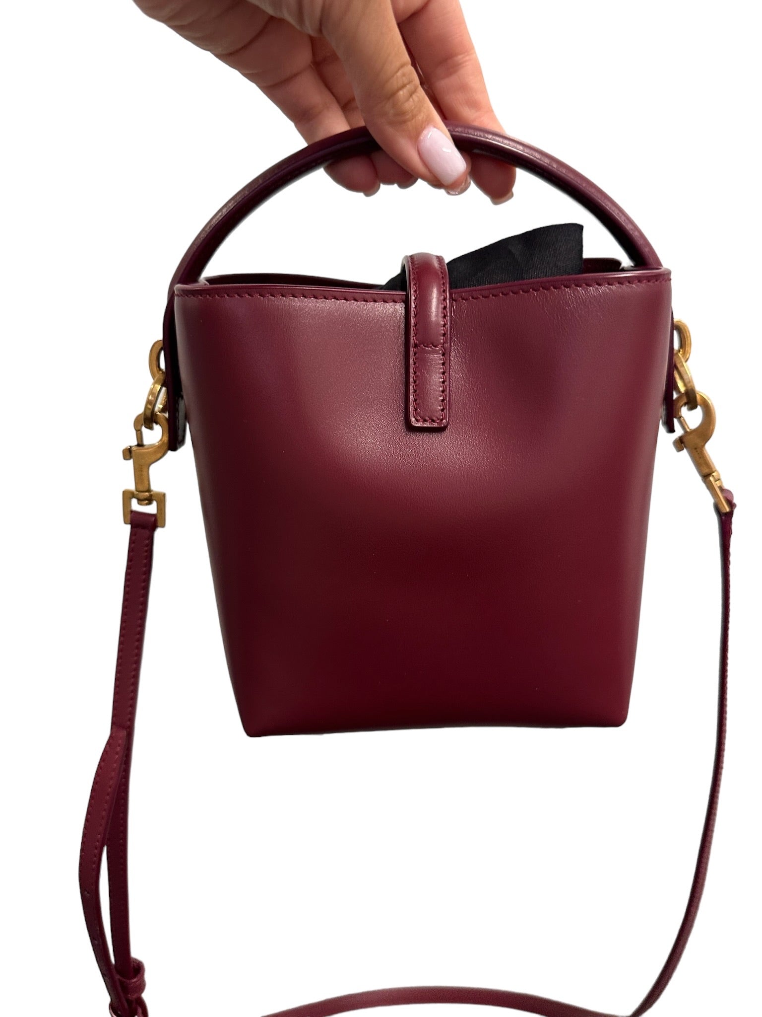 SAINT LAURENT - Burgundy Smooth Leather Mini Le 37 Bucket Bag